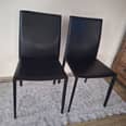 Dwa czarne,krzesła w nowoczesnym stylu. Solidna konstrukcja i wygodne siedziska. Niewielkie ślady użytkowania widoczne na zdjęciach. Cena za komplet 100 zł. Możliwy transport.