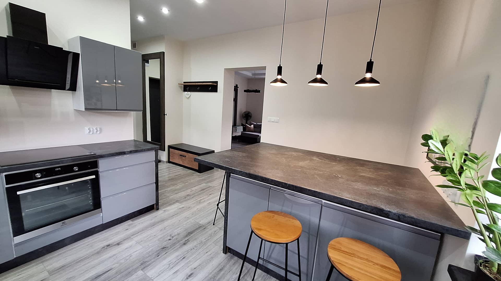 – kuchni z wyspą, świetnie wyposażonej w nowoczesne sprzęty: lodówka, płyta, zmywarka…