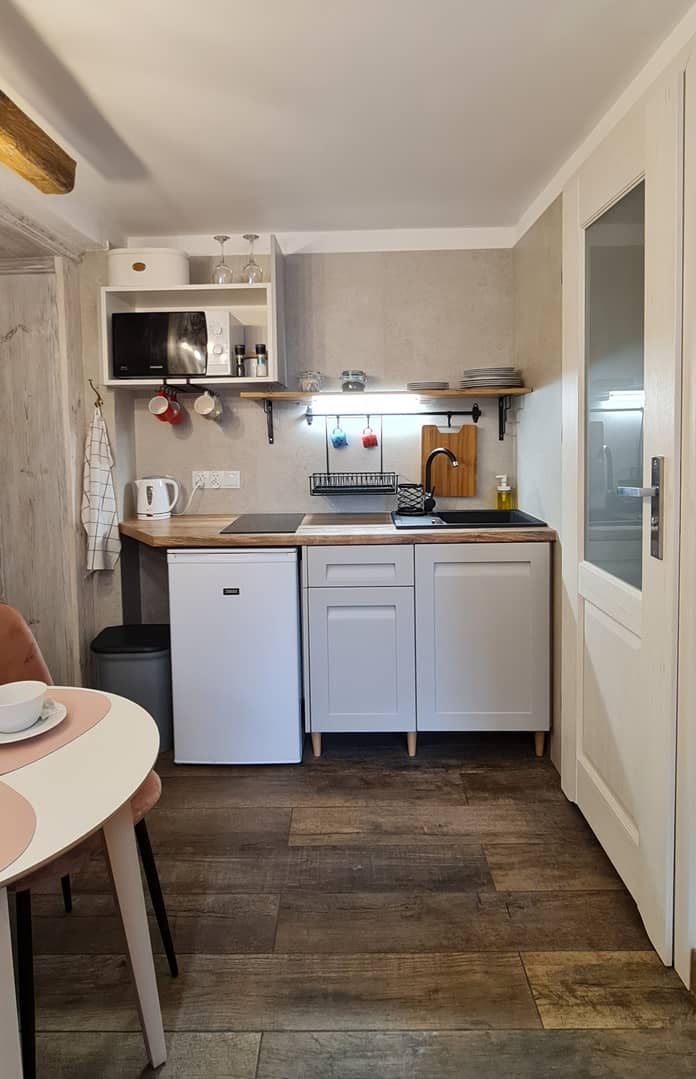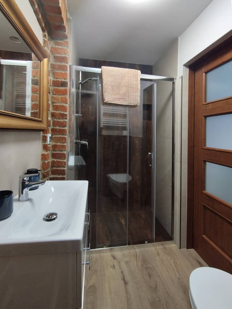 Apartamenty wyposażone są w elektryczne wodne ogrzewanie podłogowe ( sterowane zdalnymi czujnikami) i system rekuperacji. Część ścian to oryginalna cegła odkryta podczas remontu. Całość została przez nas zaprojektowana w przytulnym stylu gdzie wykorzystane są materiały z drugiej ręki co w rezultacie daje niepowtarzalny efekt bardzo ceniony przez gości. Lokal pod tą postacią działa i prężnie pracuje na booking już trzeci rok. W tak krótkim czasie zdobył ugruntowaną pozycję i prestiż. Sprzedaż obejmuje cały pakiet, czyli dwa niezależne apartamenty z pełnym wyposażeniem plus gotowy profil na booking z bardzo wysokimi ocenami oraz możliwość przejęcia już istniejących rezerwacji.