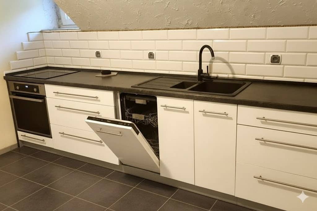 Kuchnia jest nowa i w pełni wyposażona w sprzęt AGD, który – wraz z meblami – pozostaje w mieszkaniu, co czyni ofertę gotową do wprowadzenia bez dodatkowych nakładów.