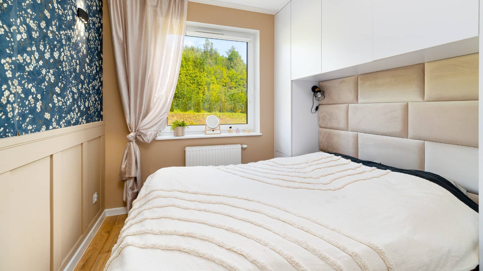 przytulna sypialnia z zabudową (ok. 8 m²),