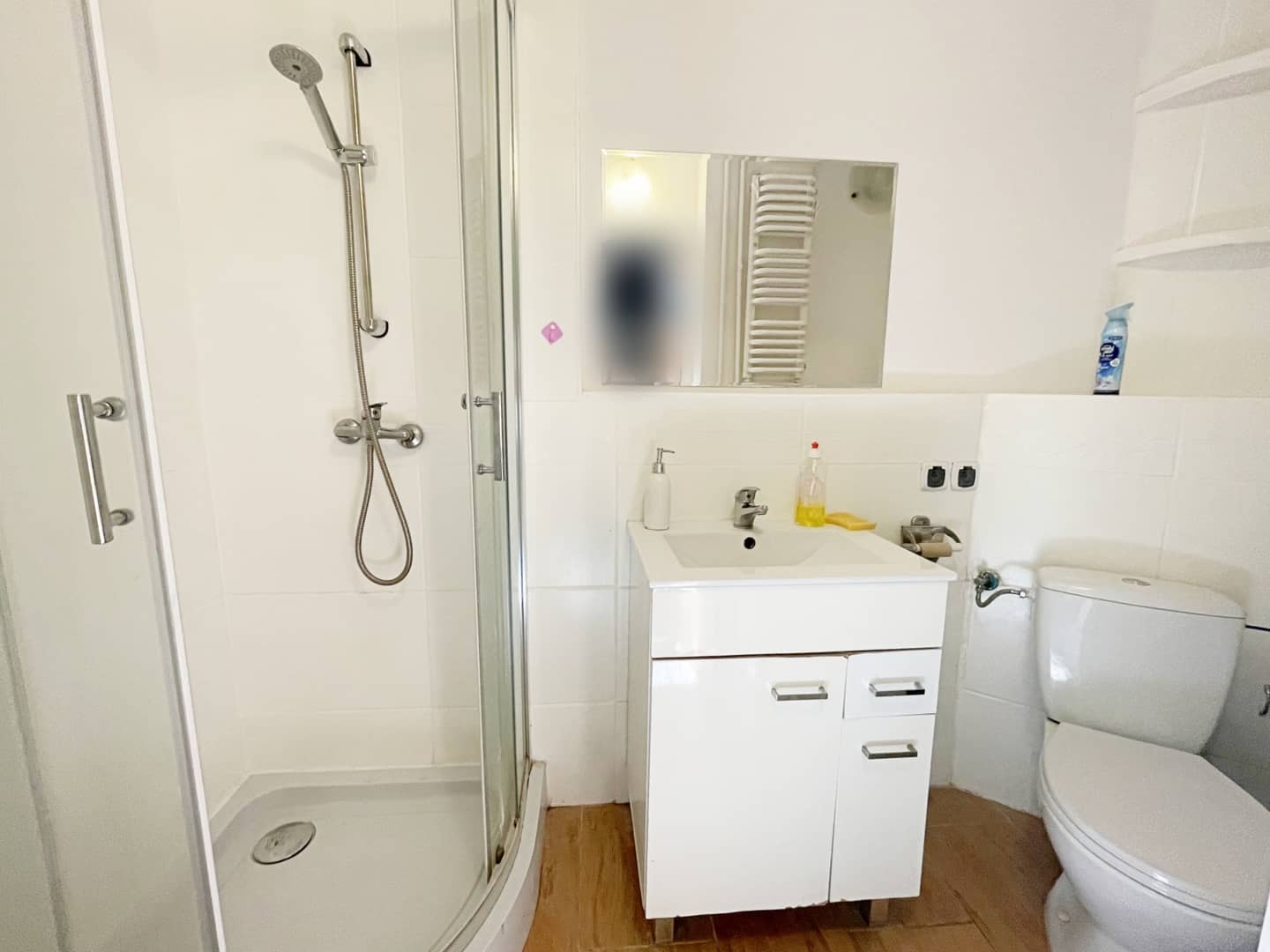 - łazienka z toaletą i kabiną prysznicową