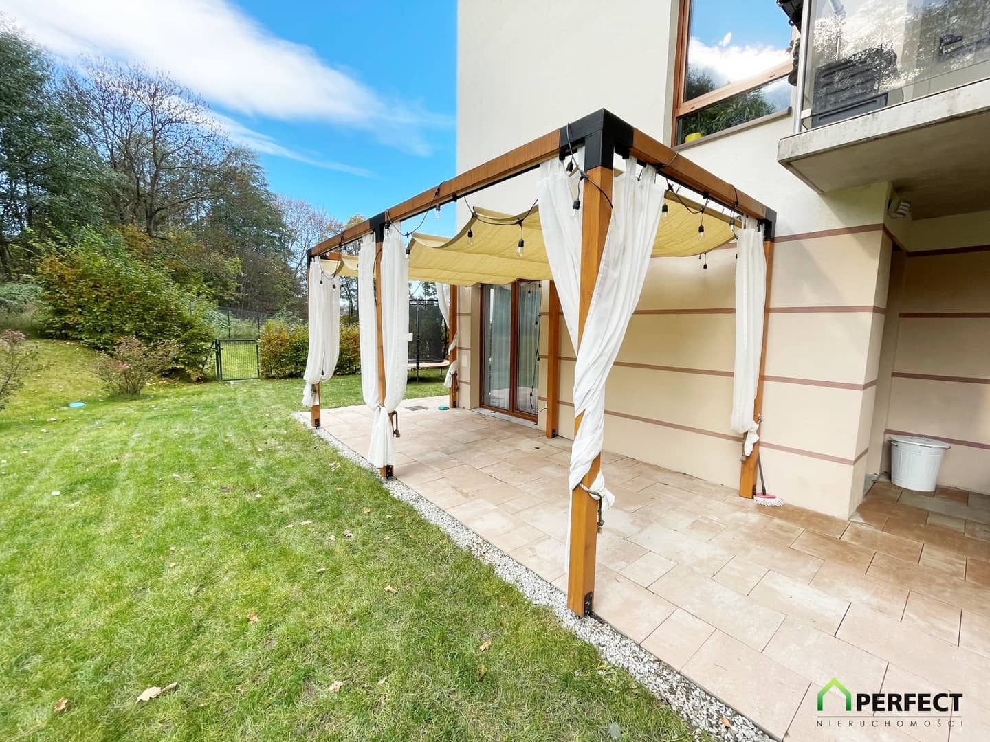 Bardzo duży atutem mieszkania jest bezpośrednie wyjście na taras i ogródek (ok. 200m2). Taras wypłytkowany i zadaszony, ogródek zagospodarowany i obsadzony zielenią.