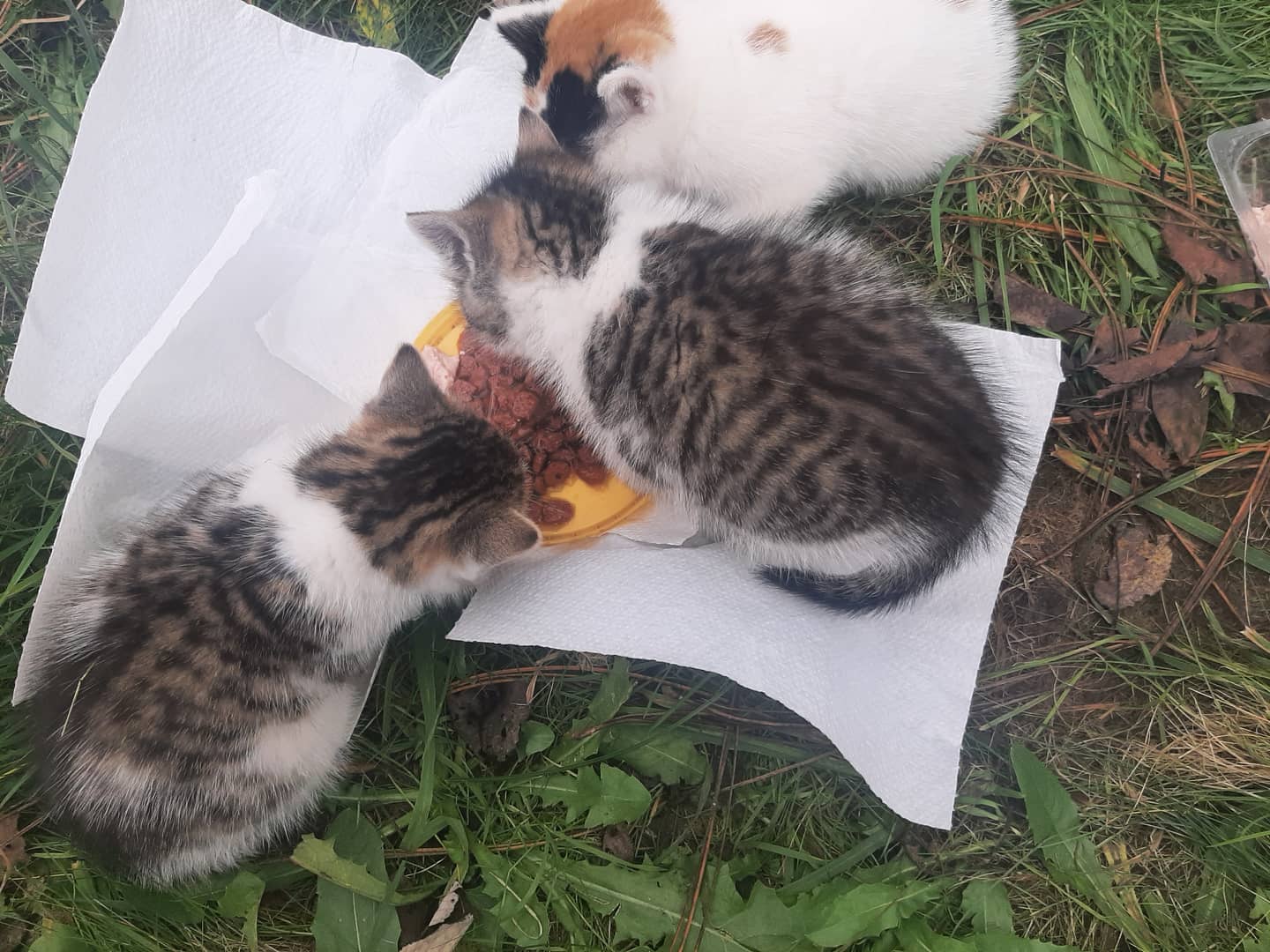Dzień dobry. Oddam w dobre ręce trzy kocięta, mają pięć tygodni, jedzą samodzielnie. Kotki już się bawią, figlują, są zdrowe i mają apetyt. Do oddania za trzy, cztery tygodnie