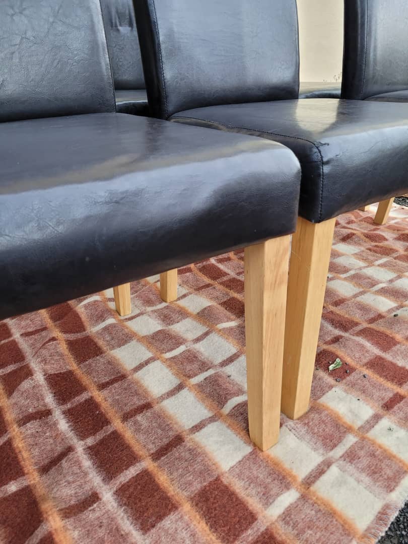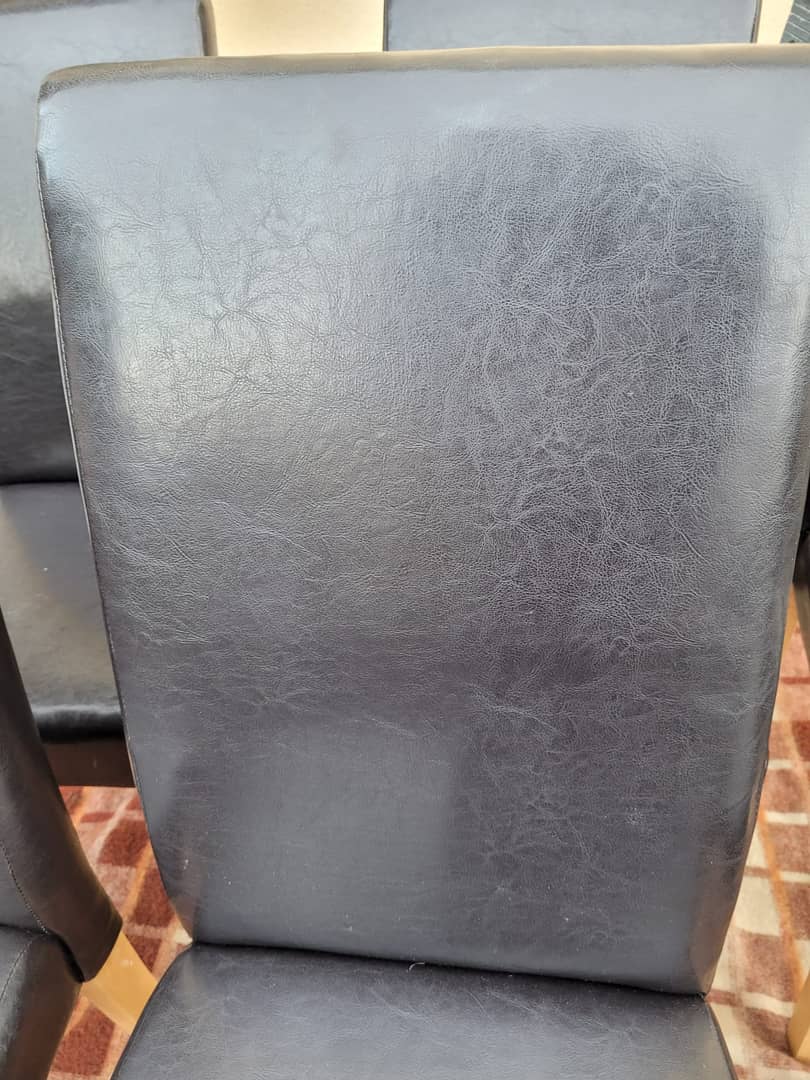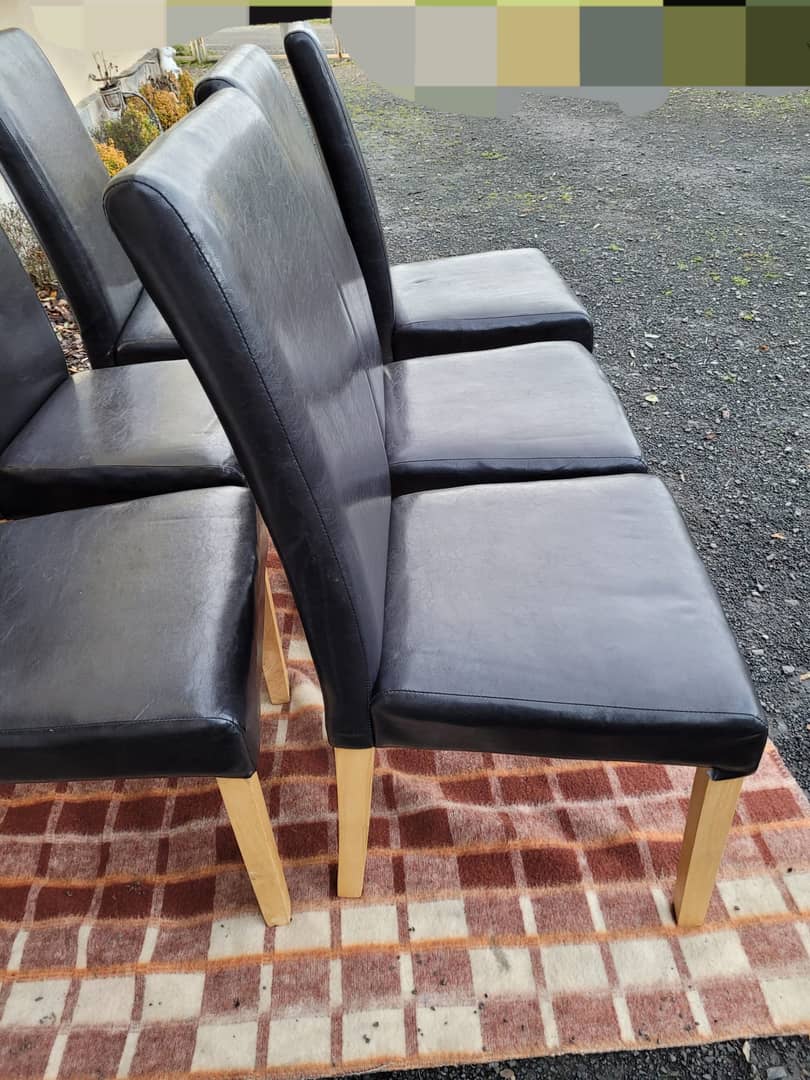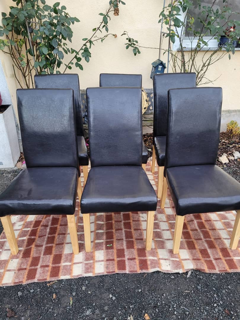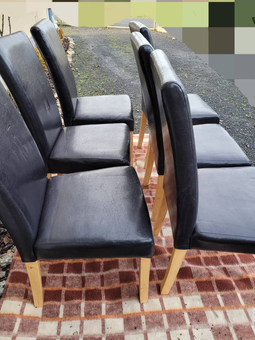 6 krzeseł z miękkiej eko-skóry, w bardzo dobrym stanie, nie rozchwiane, wygodne. Możliwy transport. Cena za komplet 460 zł.