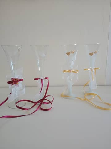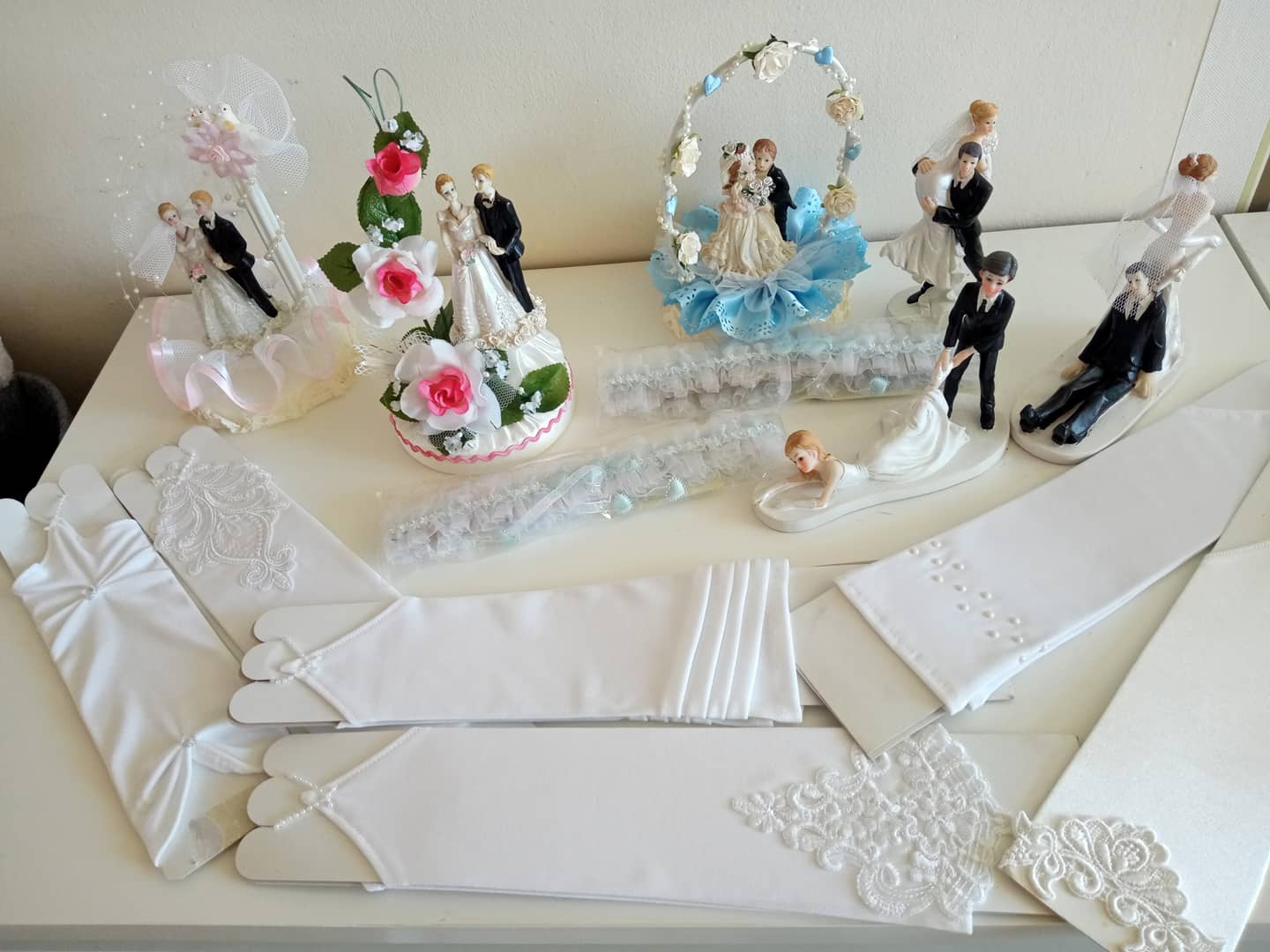 Stroiki na torty ślubne, kieliszki szampanówki, rękawiczki długie bez palców białe i czarne..
