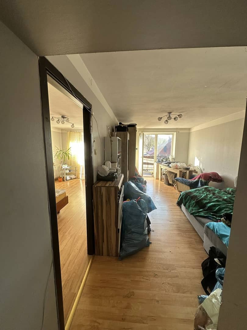Układ: sypialnia, pokój dzienny, kuchnia, łazienka z WC.