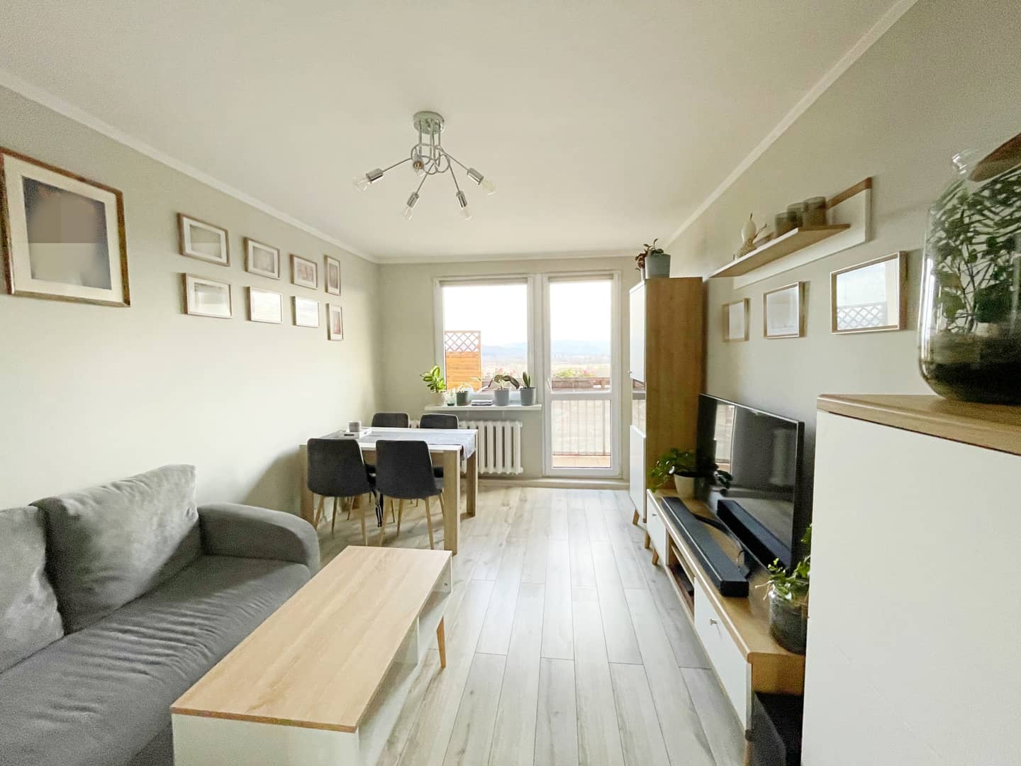 Mieszkanie wyremontowane, niezwykle słoneczne i przytulne, gustownie urządzone, nie wymagające nakładów finansowych. Dwustronna ekspozycja z balkonem, z którego rozpościera się niezwykle atrakcyjny widok na Pasmo Karkonoszy, natomiast z kuchni i z sypialni widok na Górę Szybowcową.