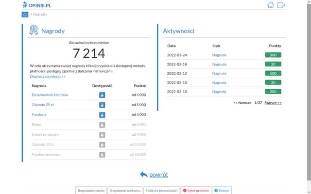 Zdobyte punkty możemy w łatwy sposób wymienić na nagrody: