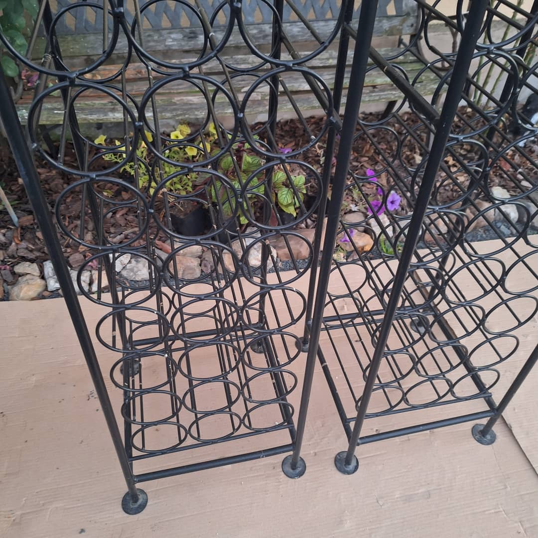 Stojaki metalowe na butelki, jeden pomieści 39 sztuk. Wymiary 32/33/164 cm, cena za jeden 200 zł. Możliwy transport lub odbiór osobisty.