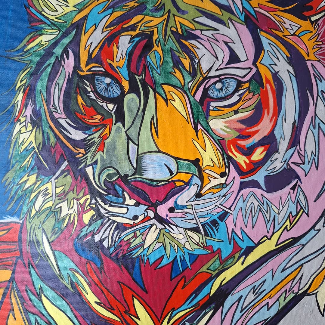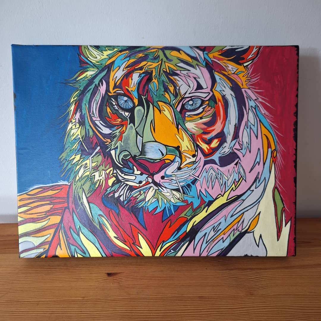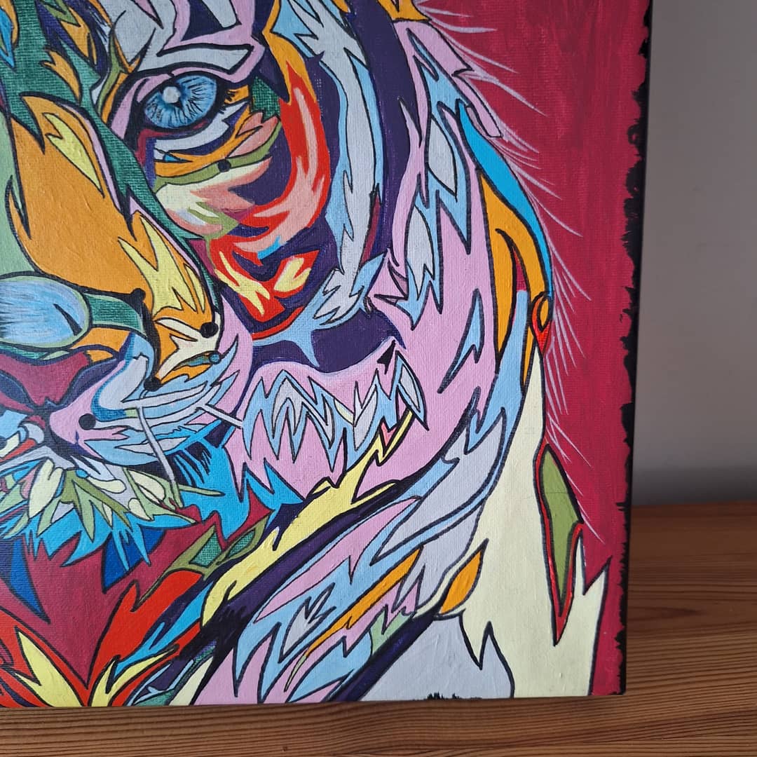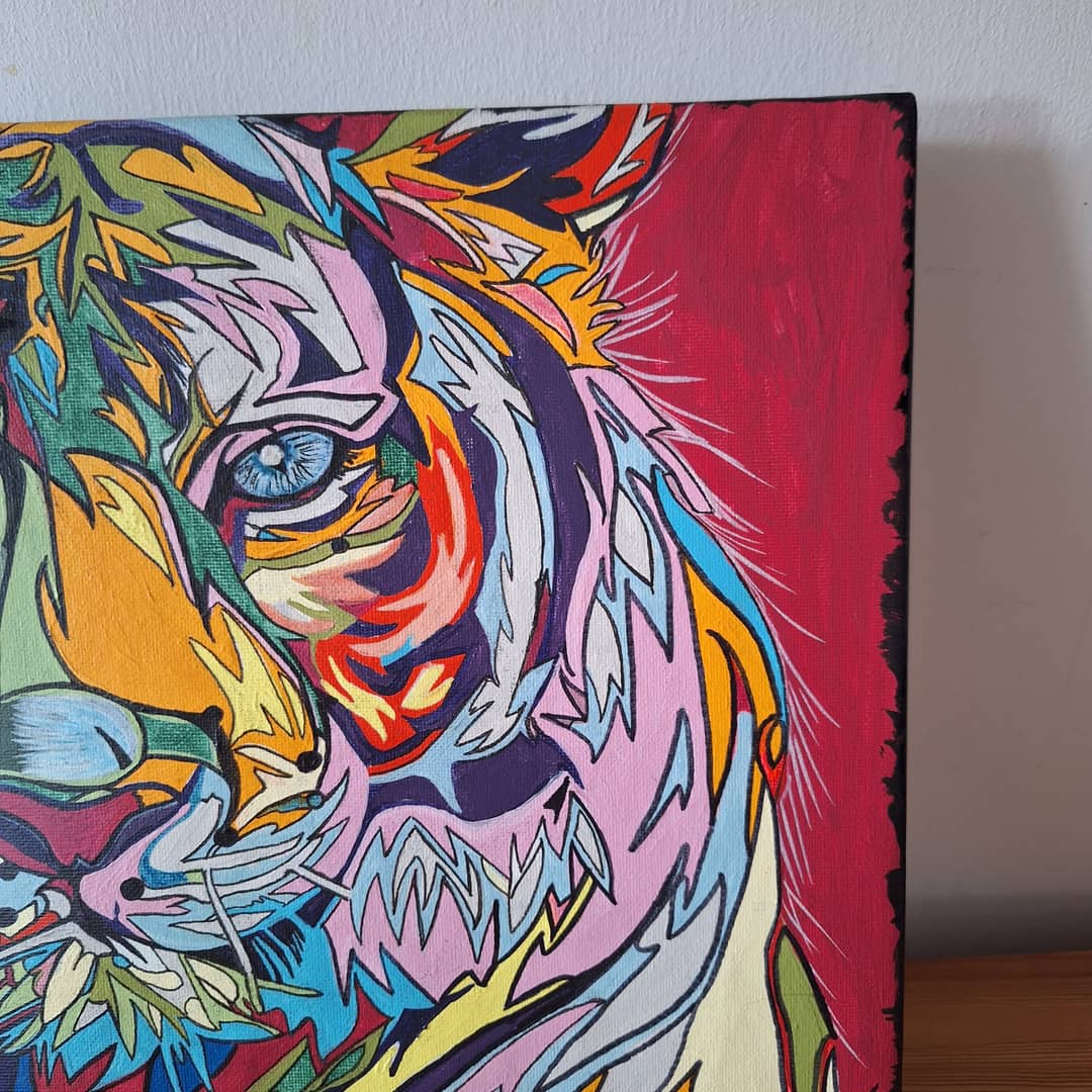 Obrazek z lwem, typu malowanie po numerach, kekki, w srebrnej ramce .Wielkość50/40 cm.Możliwy dowóz lub wysyłka. Cena 40 zł.