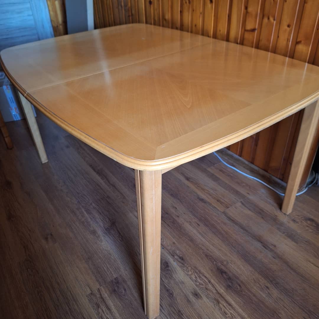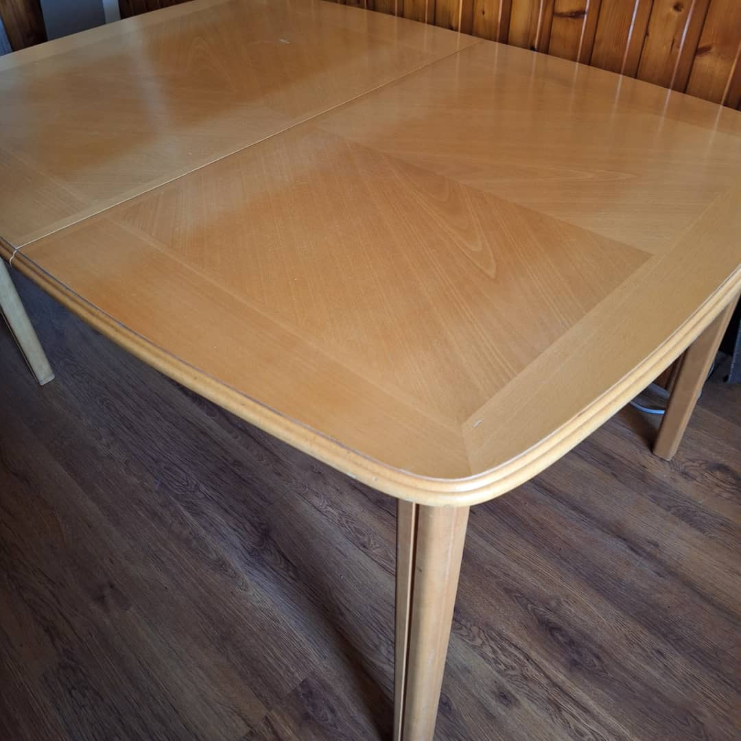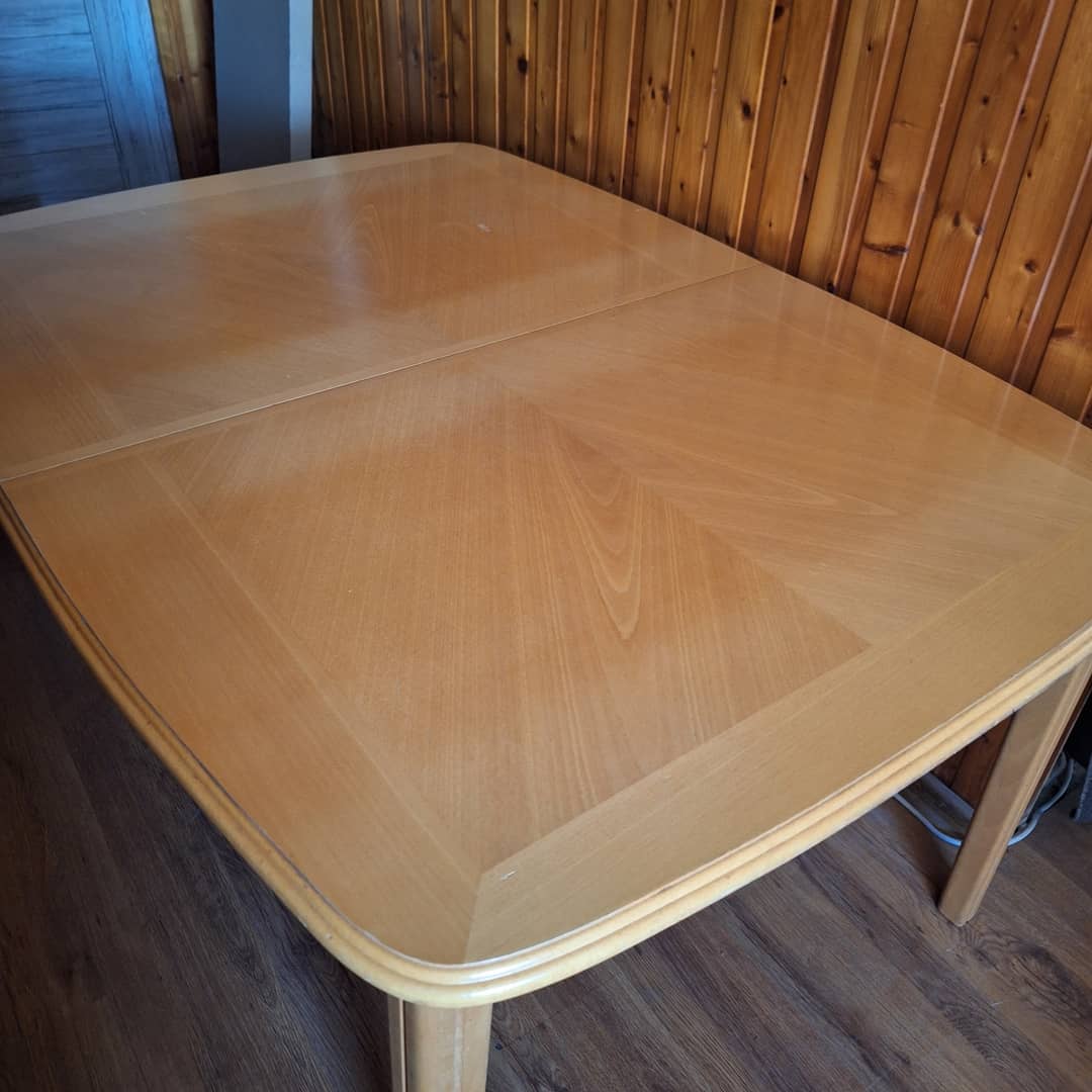 Stół drewniany nierozkładany, wymiary długość 145 cm, szerokość 105 cm, wysokość 73 cm. Widoczne ślady uzytkowania, ale jeszcze posłuży. Cena 150 zł. Możliwy transport.