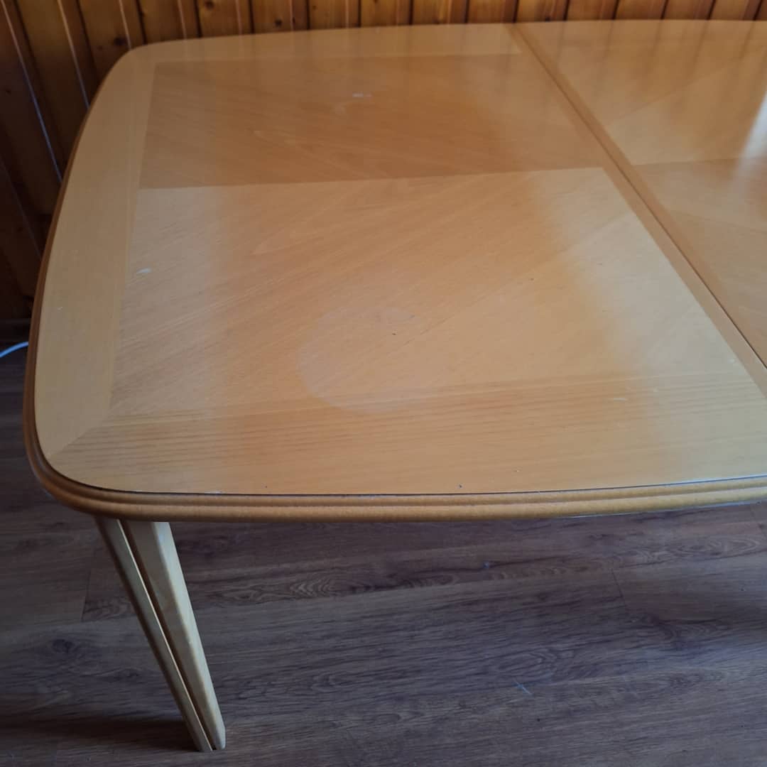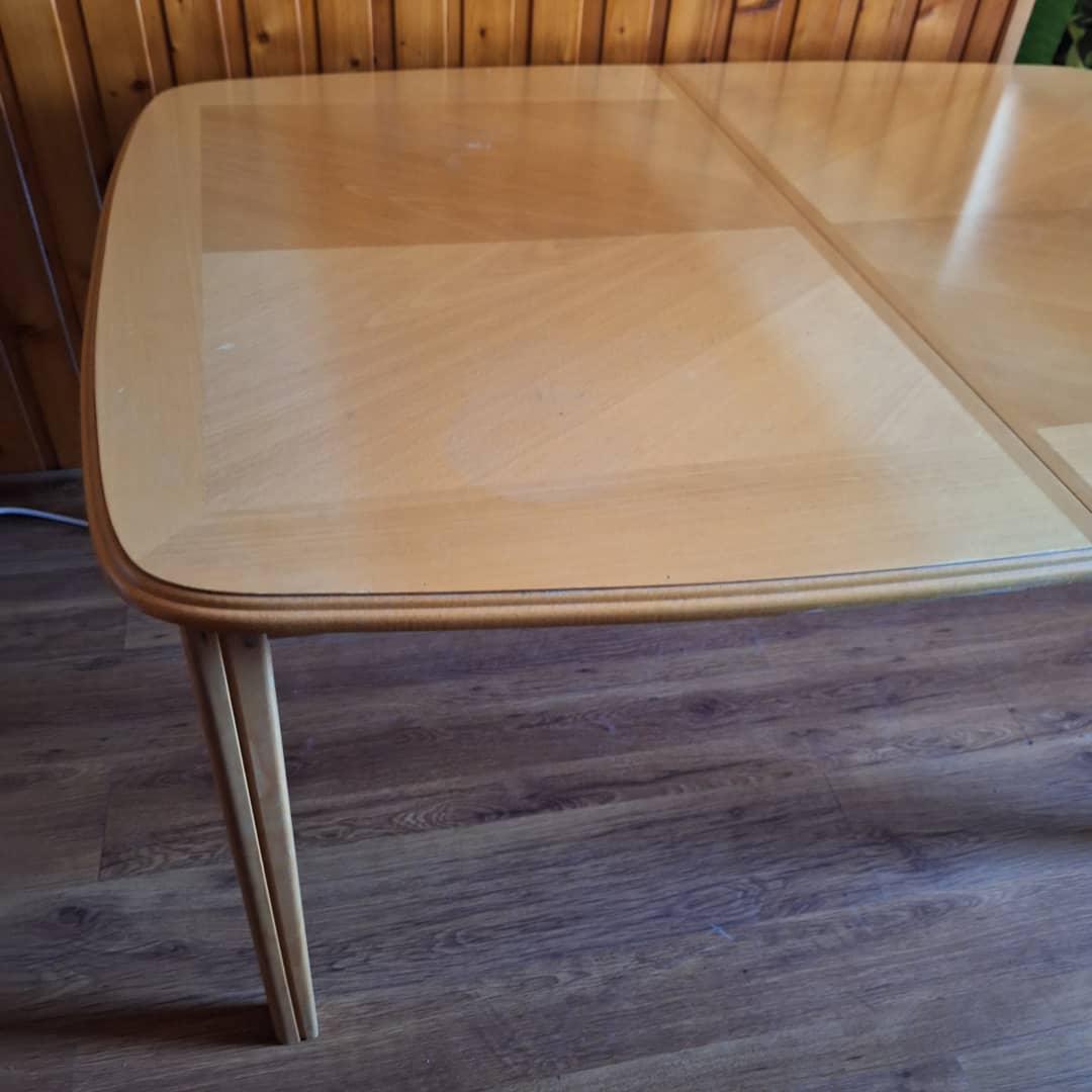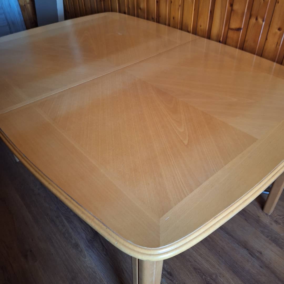 Stół drewniany nierozkładany, wymiary długość 145 cm, szerokość 105 cm, wysokość 73 cm. Widoczne ślady uzytkowania, ale jeszcze posłuży. Cena 150 zł. Możliwy transport.