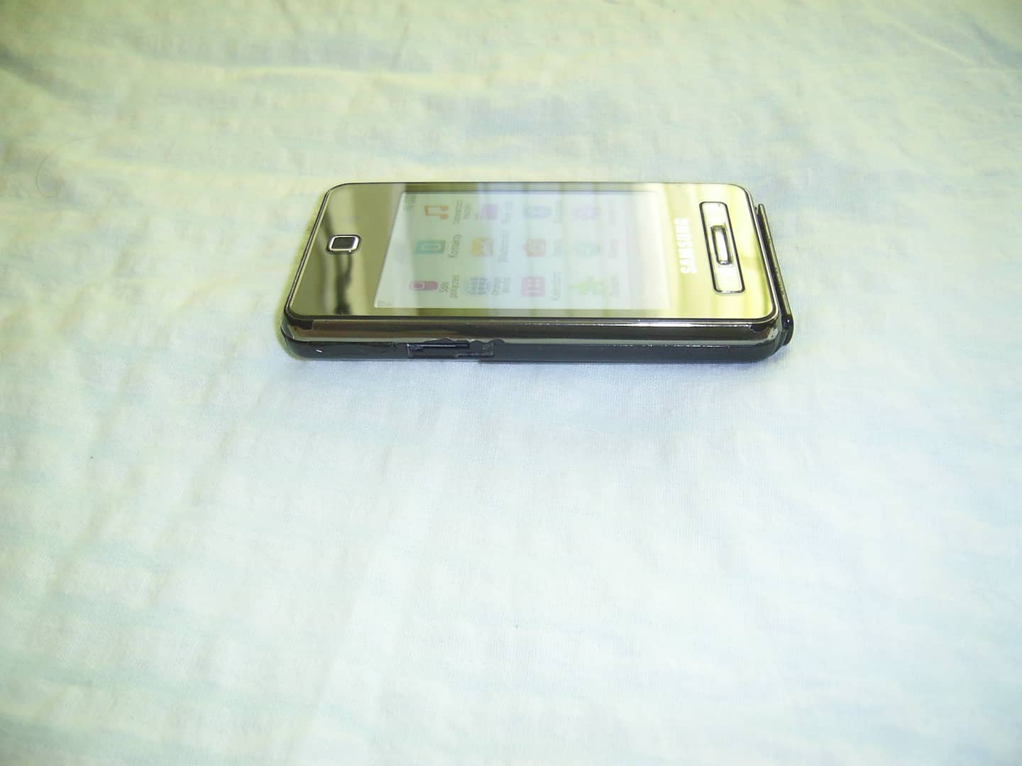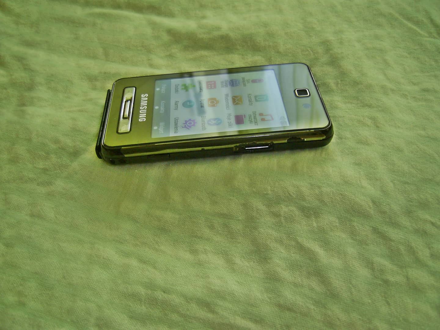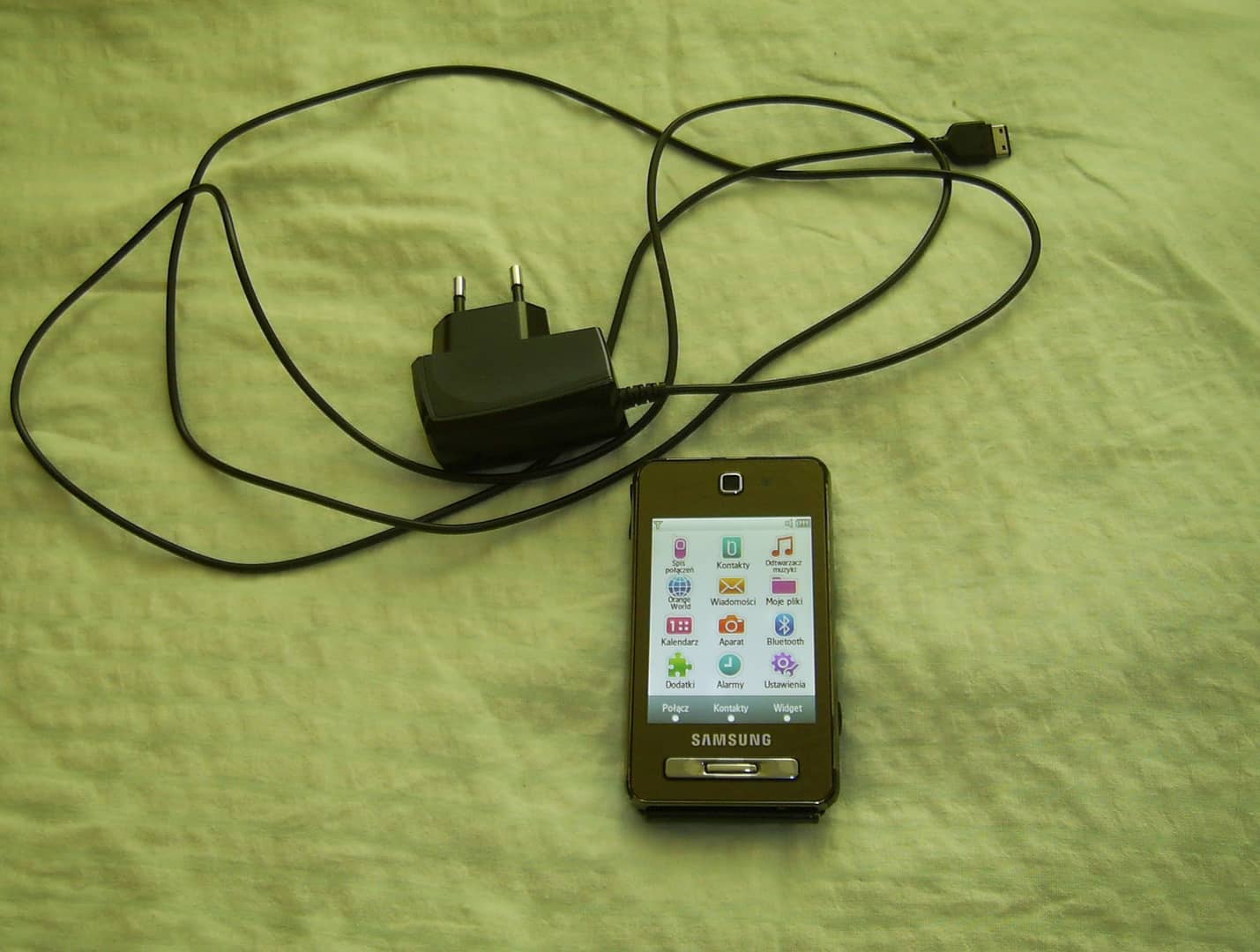 Sprzedam telefon Samsung F480. Brak simlocka ale pojawia się komunikat o wyszukiwaniu lub o ograniczonych usługach. Brak zaślepek od gniazda zasilania i słuchawek. Na obudowie ślady użytkowania w postaci rys, zarysowań, otarć lakieru na rantach itp. Wyświetlacz z niewielkimi śladami użytkowania. Po kliknięciu na ikonę aparatu pojawia się komunikat o błędzie aparatu. Dotyk działa bez zastrzeżeń. System operacyjny producenta. Łączność w technologii 2G/3G, bluetooth. Nie posiada WiFi. Wyświetlacz 2,8" 240 x 320 px. Pamięć 256 mb. Obsługa kart pamięci microSD do 8 GB. Aparat fotograficzny tylny 5 Mpx, przedni 0,3 Mpx. W komplecie z ładowarką. 20 zł.