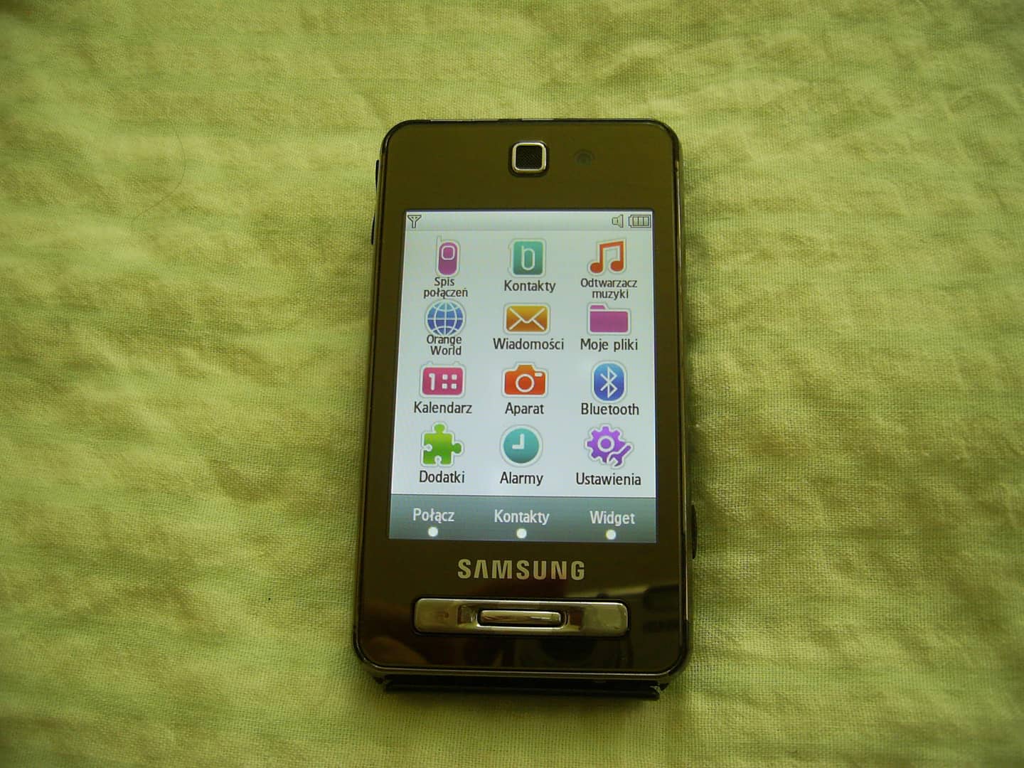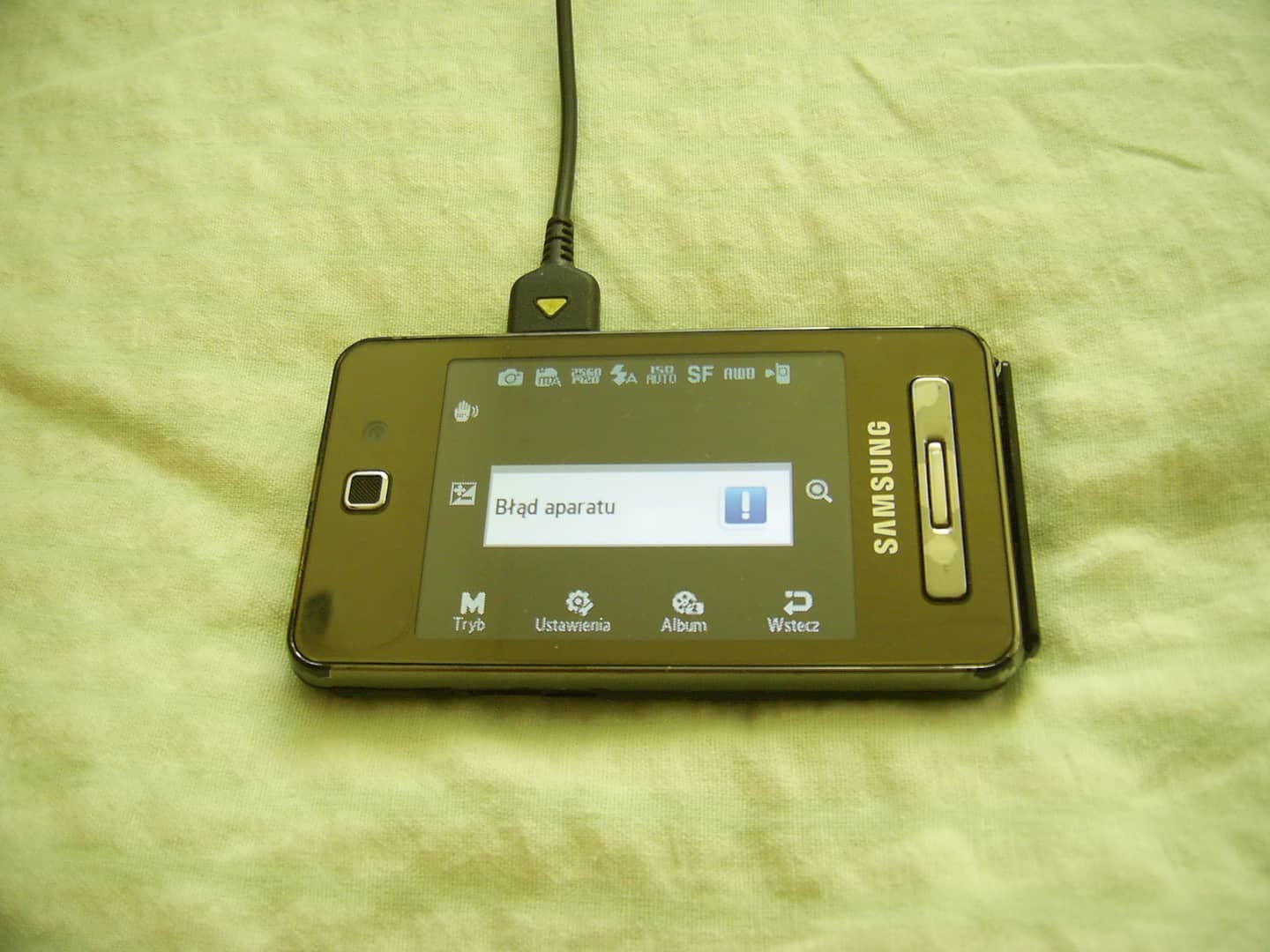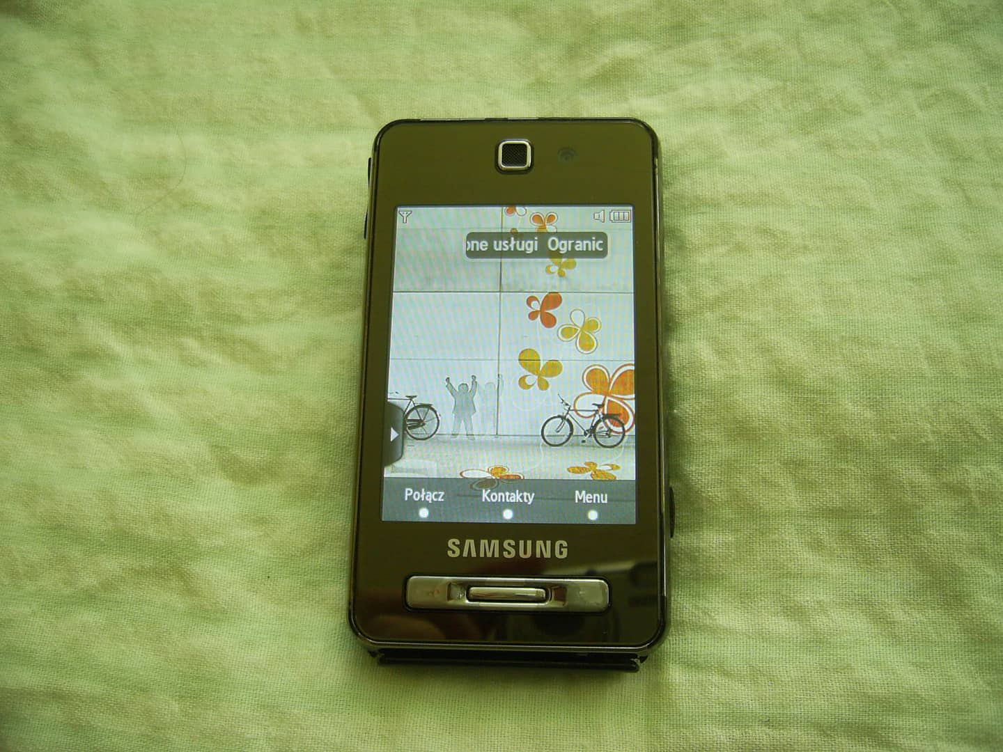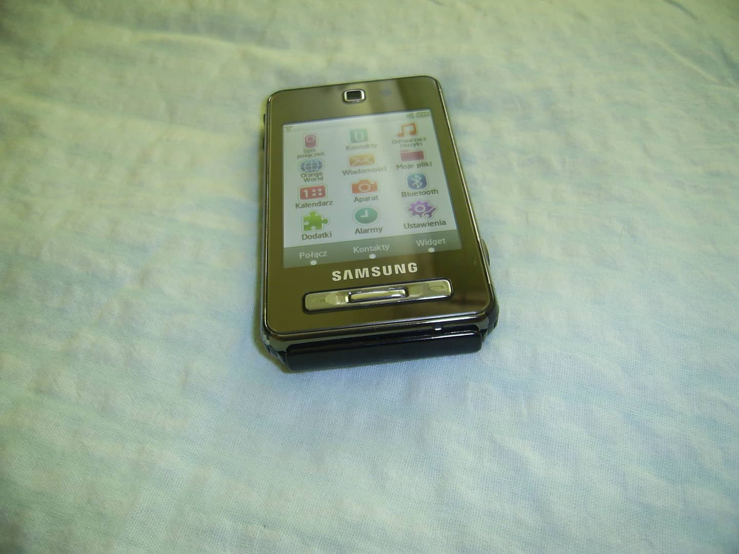Sprzedam telefon Samsung F480. Brak simlocka ale pojawia się komunikat o wyszukiwaniu lub o ograniczonych usługach. Brak zaślepek od gniazda zasilania i słuchawek. Na obudowie ślady użytkowania w postaci rys, zarysowań, otarć lakieru na rantach itp. Wyświetlacz z niewielkimi śladami użytkowania. Po kliknięciu na ikonę aparatu pojawia się komunikat o błędzie aparatu. Dotyk działa bez zastrzeżeń. System operacyjny producenta. Łączność w technologii 2G/3G, bluetooth. Nie posiada WiFi. Wyświetlacz 2,8" 240 x 320 px. Pamięć 256 mb. Obsługa kart pamięci microSD do 8 GB. Aparat fotograficzny tylny 5 Mpx, przedni 0,3 Mpx. W komplecie z ładowarką. 20 zł.