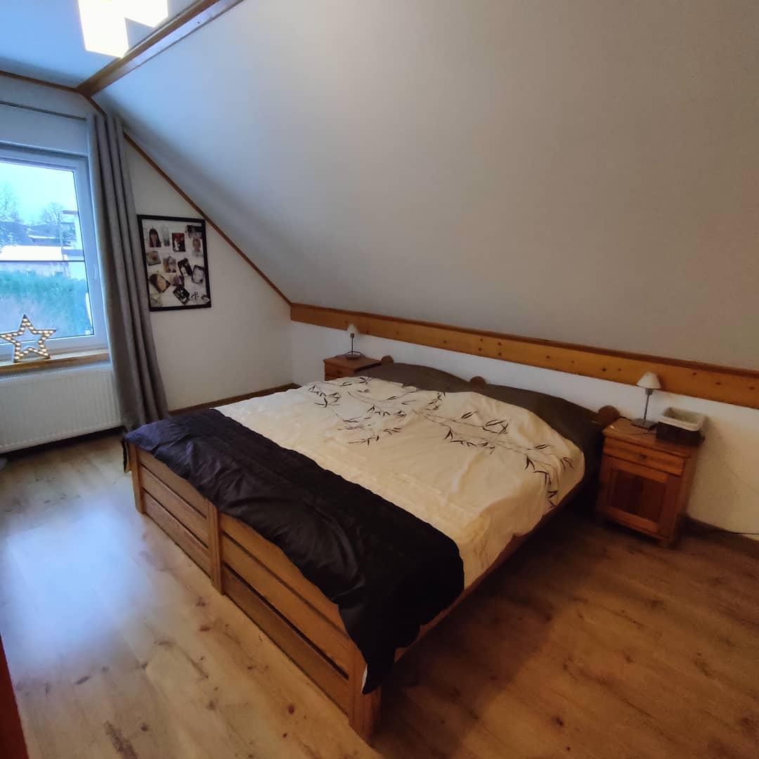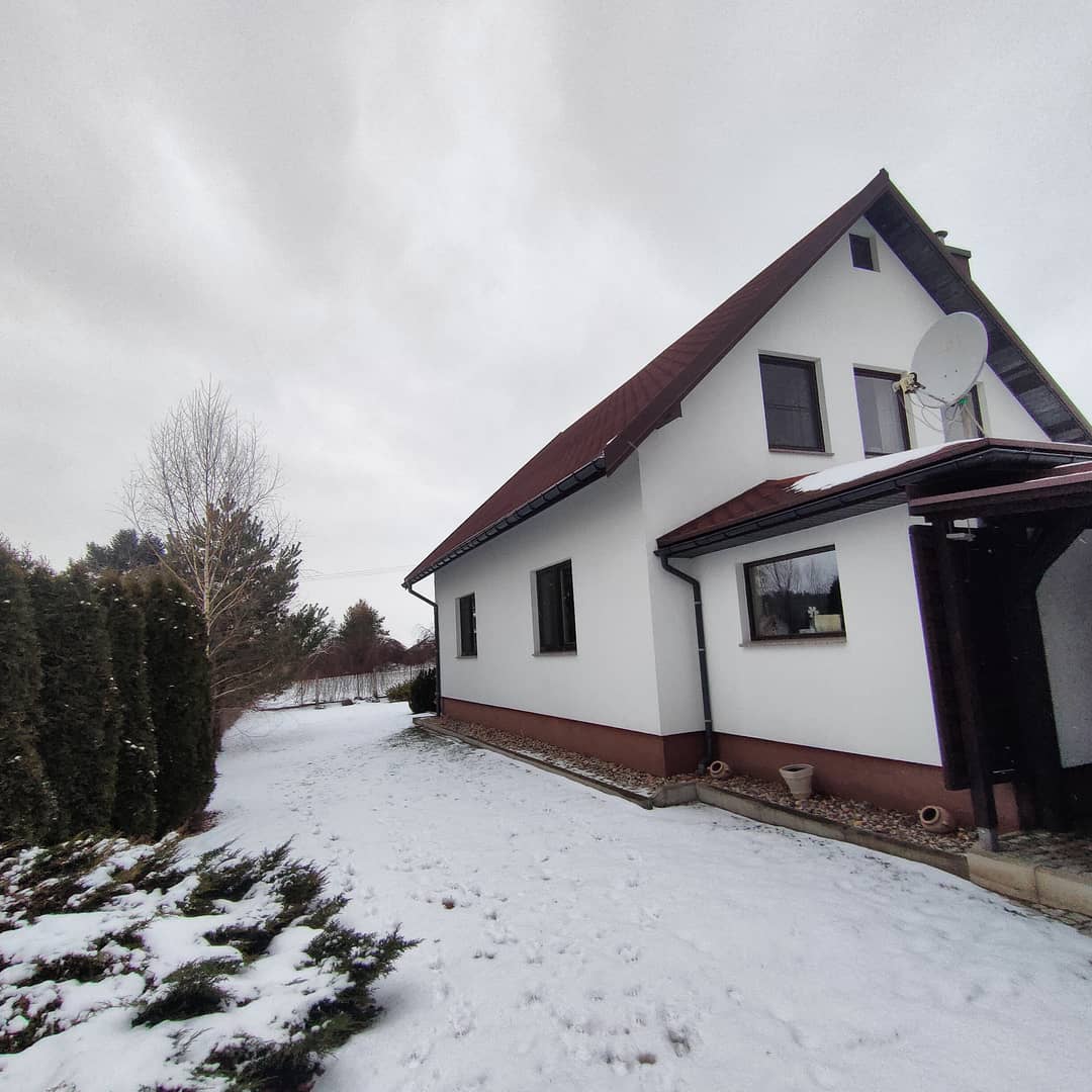 Atrakcyjny dom wolnostojący w Jeżowie Sudeckim. Budowany w 2005 roku z suporexu, dach pokryty gontem, ocieplony styropianem, pokryty tynkiem strukturalnymi. Powierzchnia całkowita domu wynosi 150m2 z garażem w tym użytkowa 124m2. Parter domu obejmuje przeszklony ganek, przedpokój z dużą szafą w zabudowie, pomieszczenie techniczne jako garderoba również z szafami w zabudowie, korytarz, oddzielną zabudowaną i wyposażoną kuchnię, salon ( możliwość połączenia z kuchnią ) gabinet oraz łazienkę z kabiną prysznicową. Na piętro prowadzą drewniane schody gdzie znajdują się 3 pokoje w tym 2 z balkonem, garderoba ( może pełnić również funkcje dodatkowego pokoju ) oraz łazienkę z wanną. Powyżej strych. Okna pcv, podłogi pokryte panelami i płytkami, ściany tynki. Ogrzewanie gazowe, ciepła woda z pompy ciepła. Dodatkowo garaż wolnostojący z wiatą oraz osobna wiata na dwa samochody. Teren ogrodzony, wyłożony kostką ładnie zagospodarowany krzewami i drzewkami. Atrakcyjna lokalizacja w otoczeniu domów jednorodzinnych, w uroczym miejscu zarazem zimą jak i latem, w bliskiej odległości od centrum wsi gdzie znajduje się sklepy, markety, przystanek MZK, Przychodnia lekarska. Cena podlega negocjacji, serdecznie zapraszam na prezentację. Nieruchomości Rychlewski