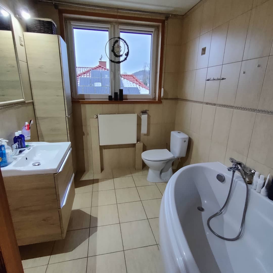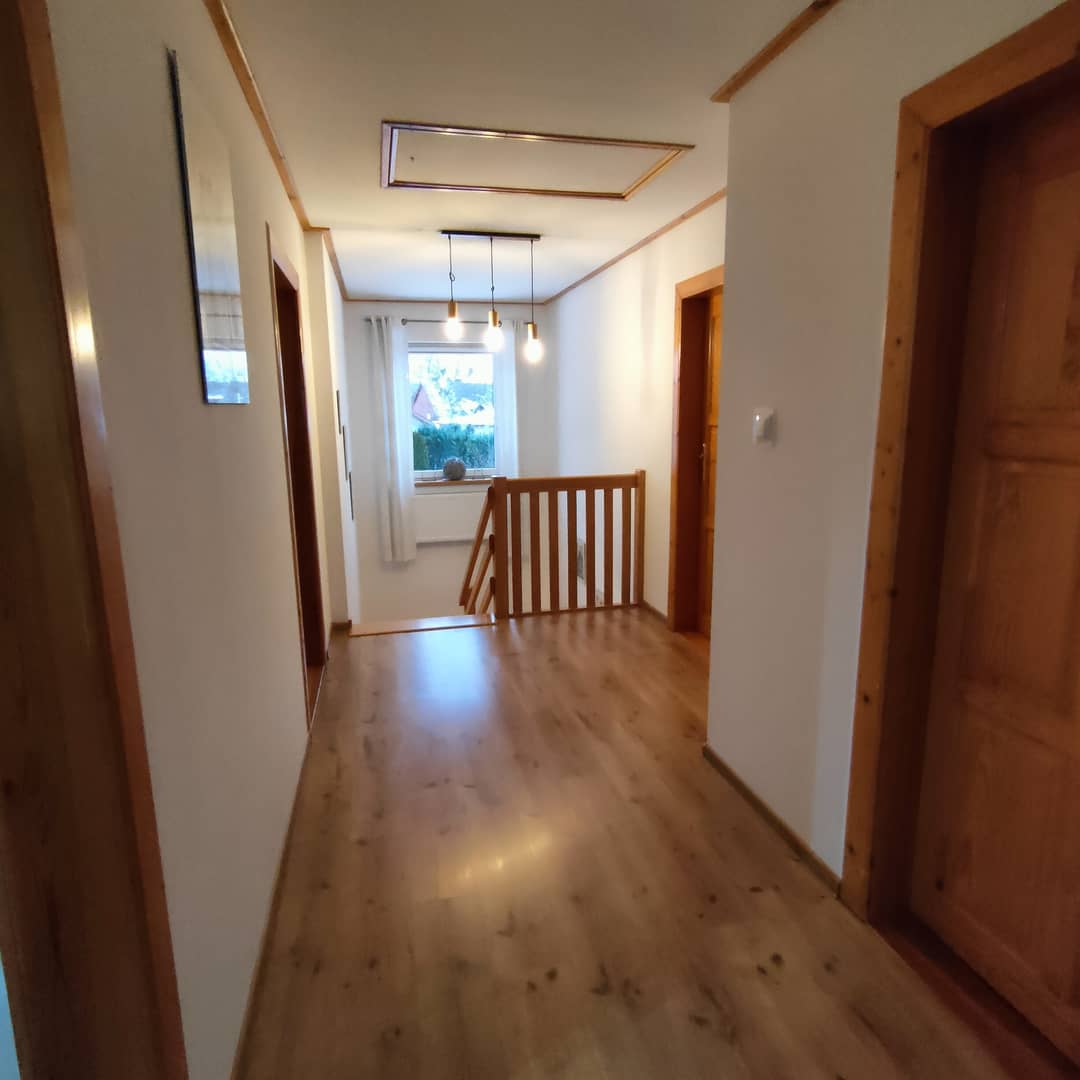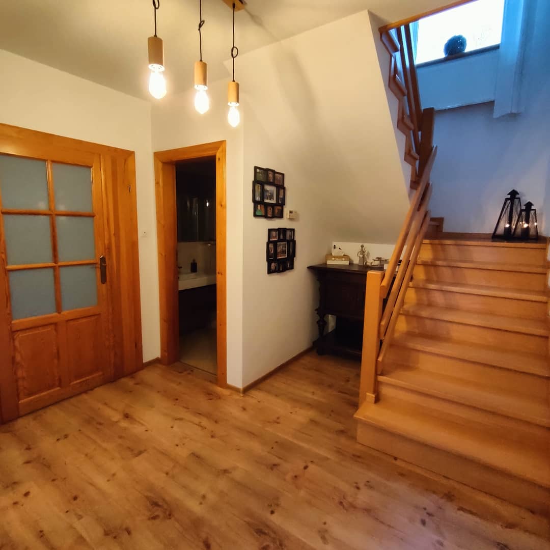 Komfortowo wykończony dom w zabudowie bliźniaczej, w Kowarach. Posadowiony na działce 523 m2 o powierzchni całkowitej około 190 m2 i użytkowej 153 m2. W przyziemiu budynku znajduje się pralnia,