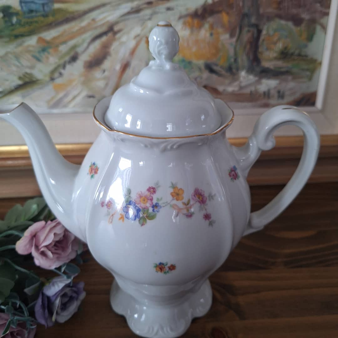 Dzbanek porcelanowy do kawy lub herbaty, produkt z Czechosłowacji , pojemność 1L. Możliwy dowóz lub wysyłka. Cena 70 zł.