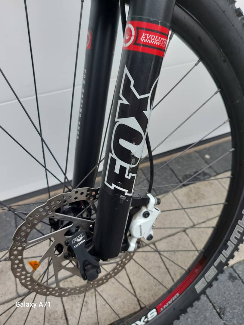 - amortyzator FOX EVOLUTION na sztywnej piaście , regulowany , powietrzny z blokadą skoku