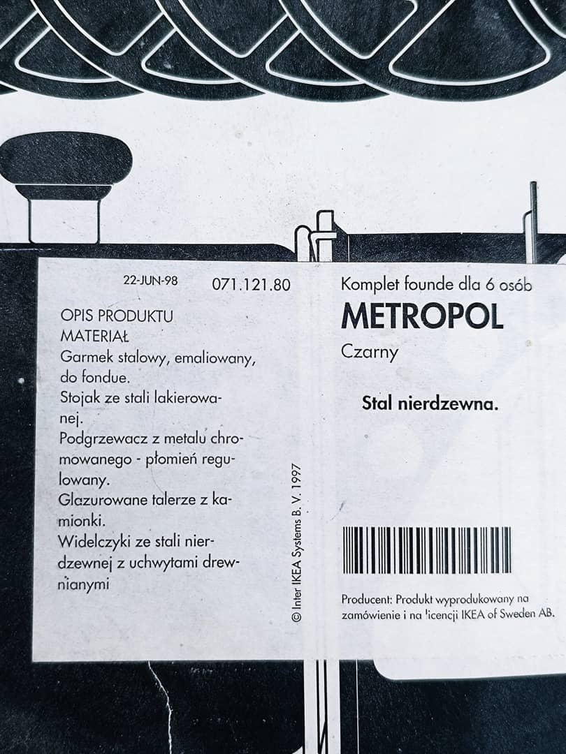 Kompletny zestaw Ikea Metropol Fondue dla 6 osób w oryginalnym kartonie. Zawiera: