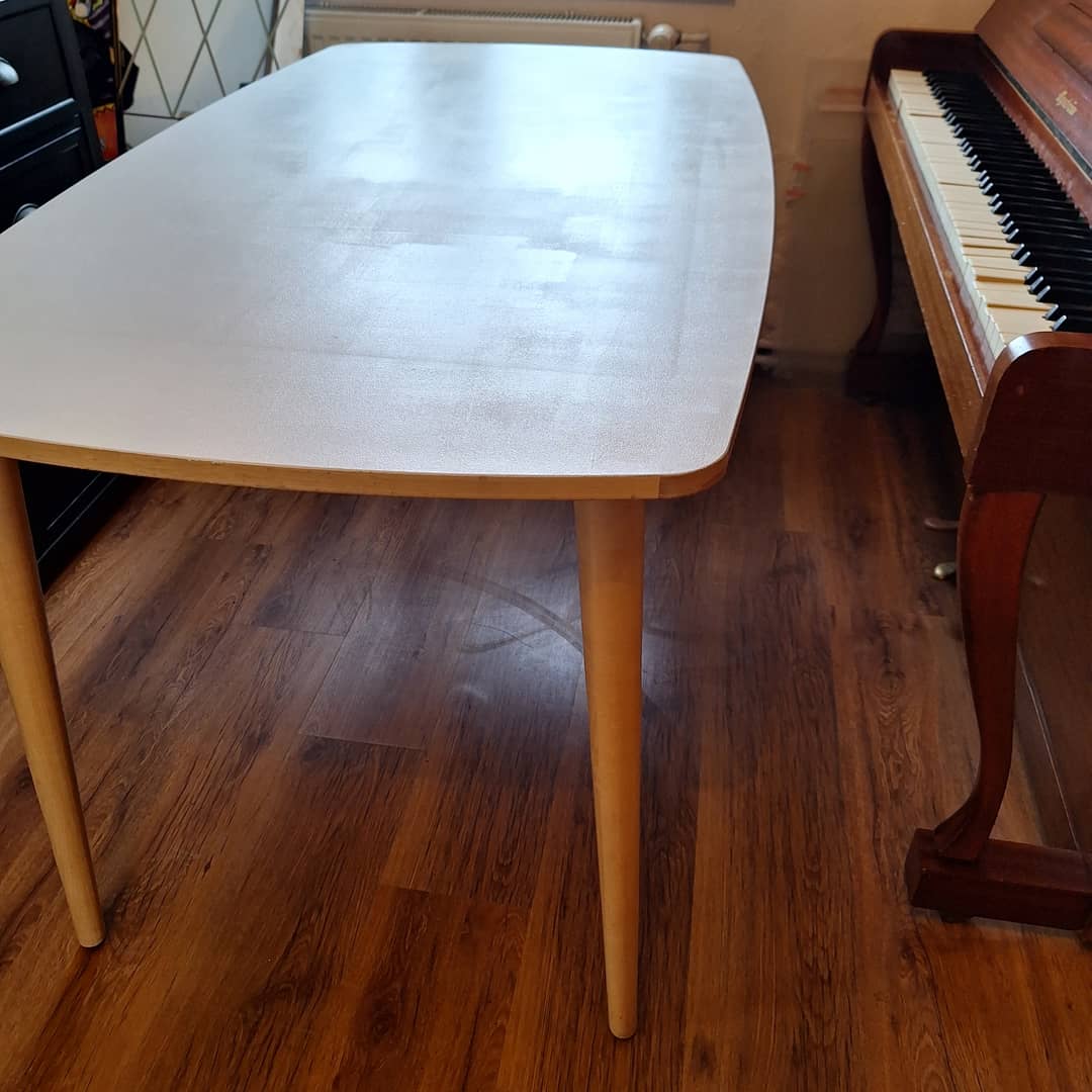 Stół z białym blatem , zaokrąglone rogi stołu , stan bardzo dobry ,blat jest bardzo dobry do utrzymania czystości. Wymiary długość 137 cm , szerokość 77 cm , wysokość 74 cm . Możliwy transport . Cena 220 zł.