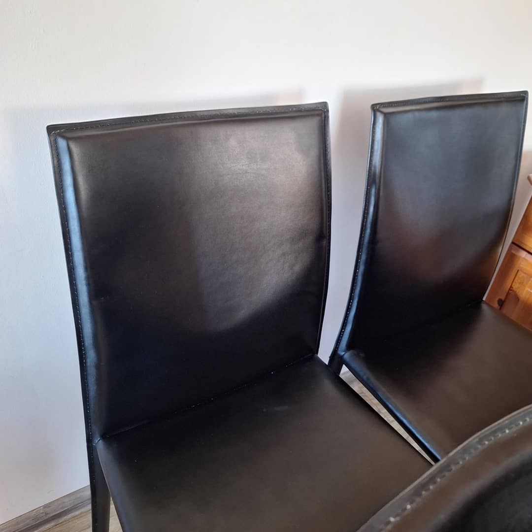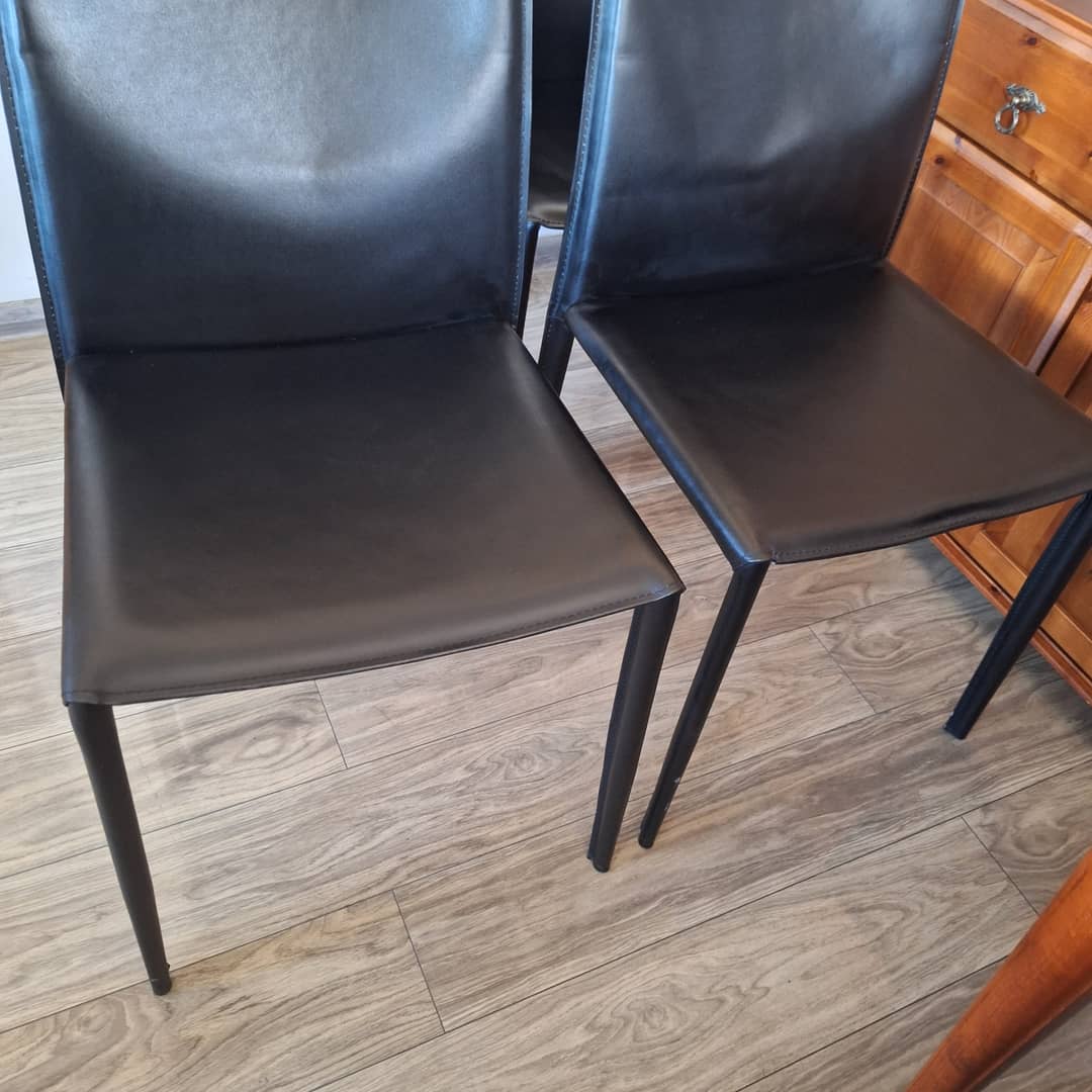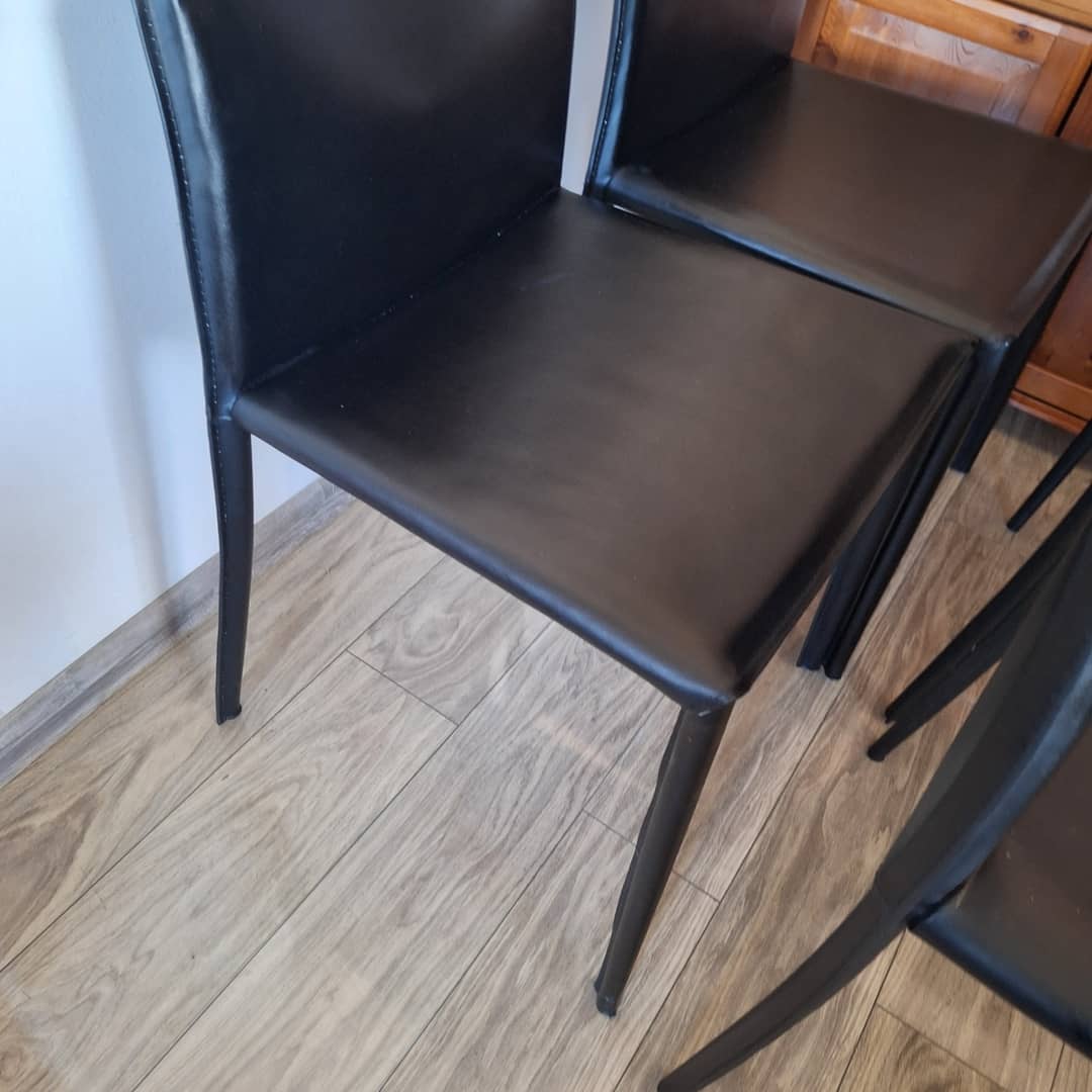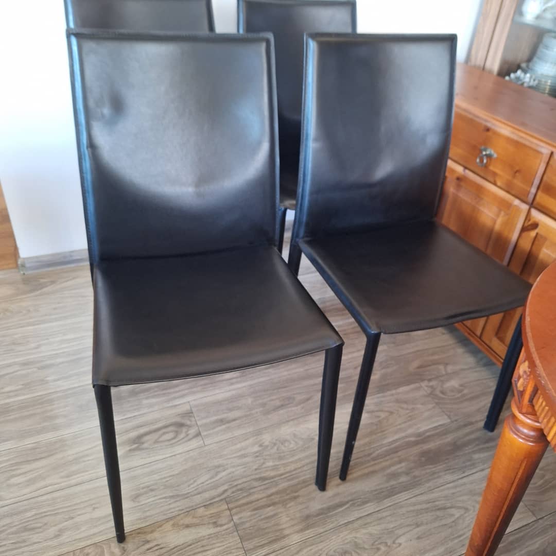 Cztery czarne, eleganckie w nowoczesnym stylu. Solidna konstrukcja i wygodne siedziska. Możliwy transport. Cena 280 zł.