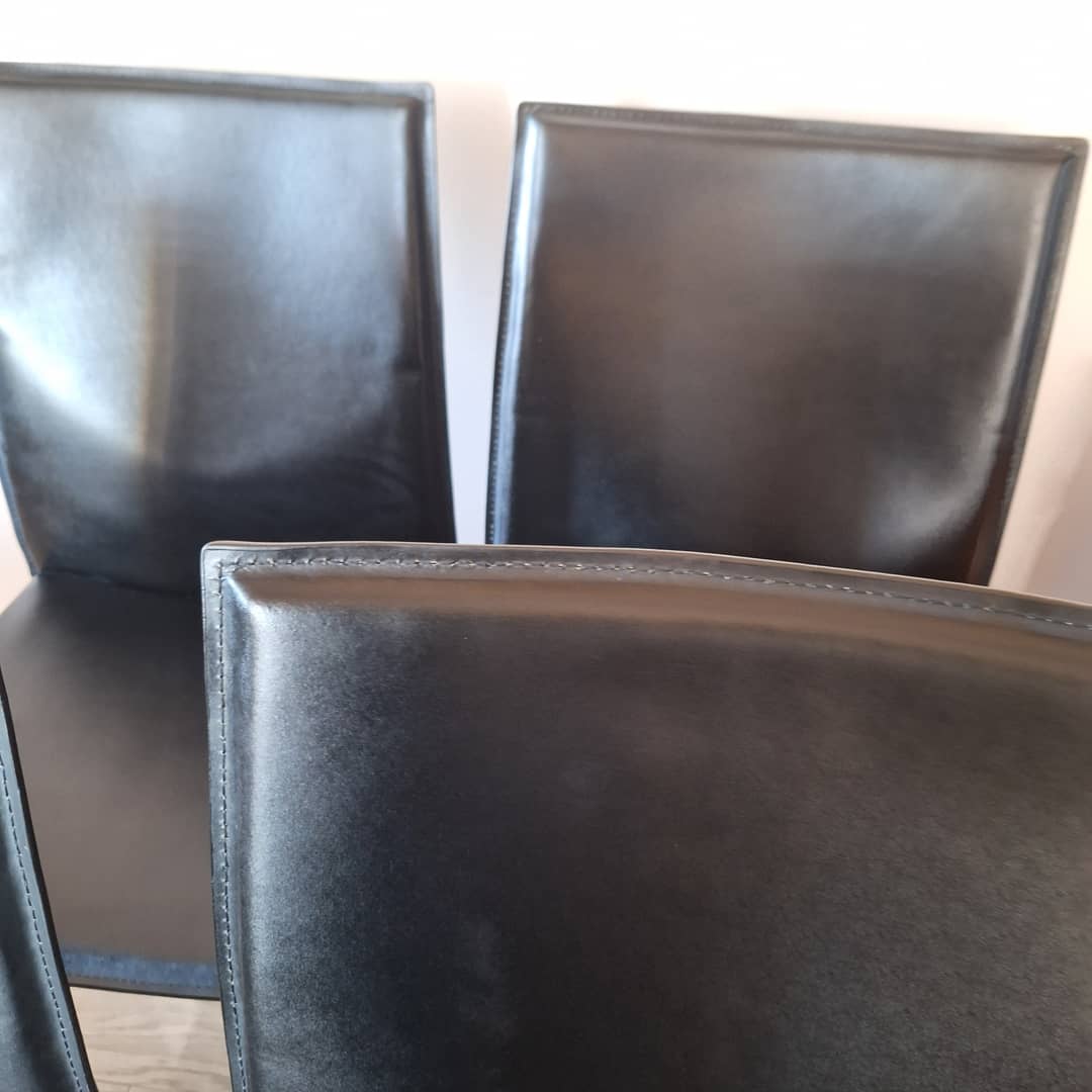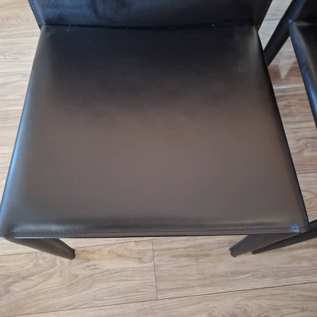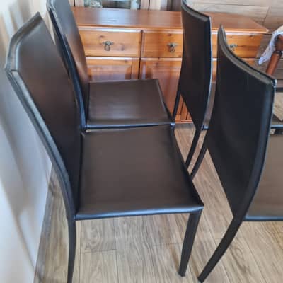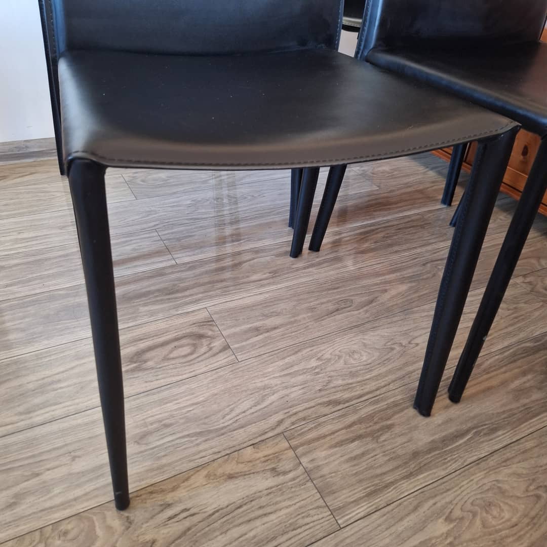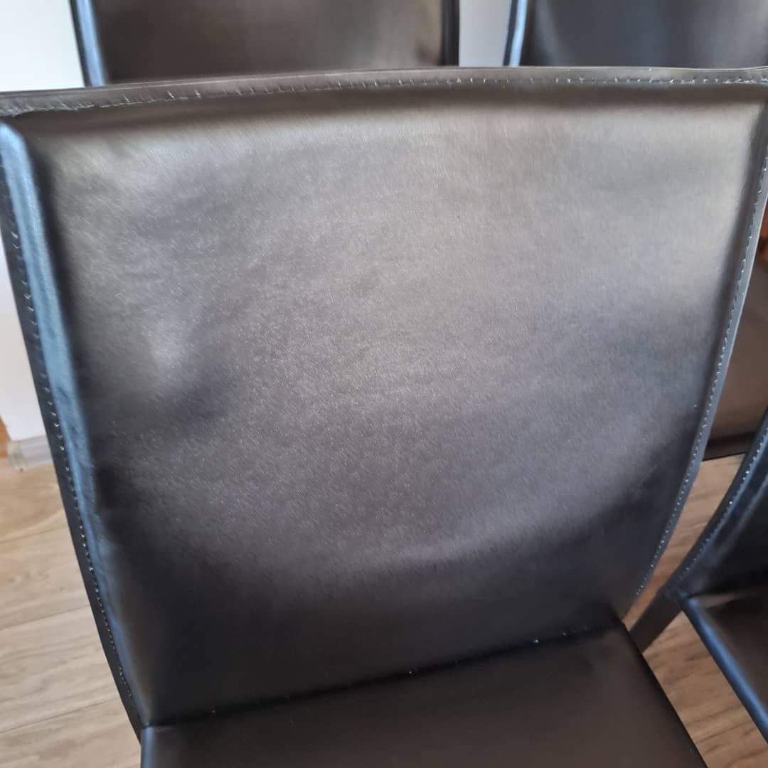 Cztery czarne, eleganckie w nowoczesnym stylu. Solidna konstrukcja i wygodne siedziska. Możliwy transport. Cena 280 zł.