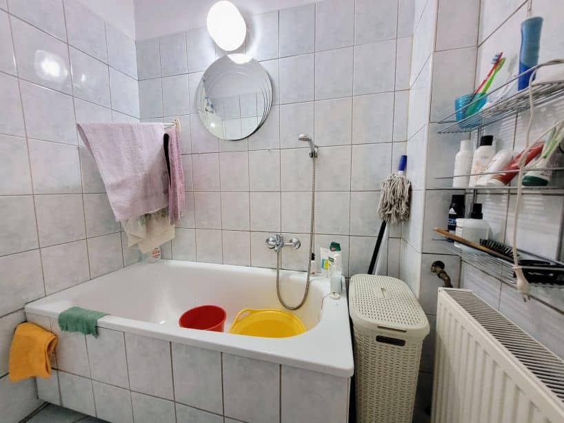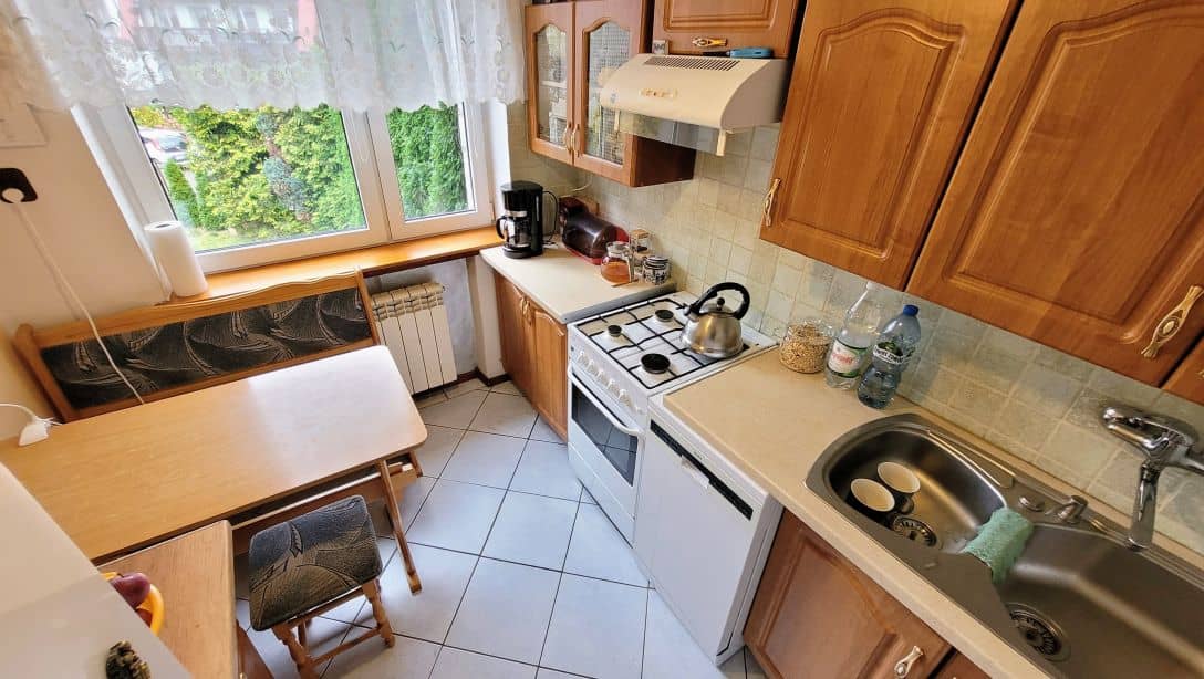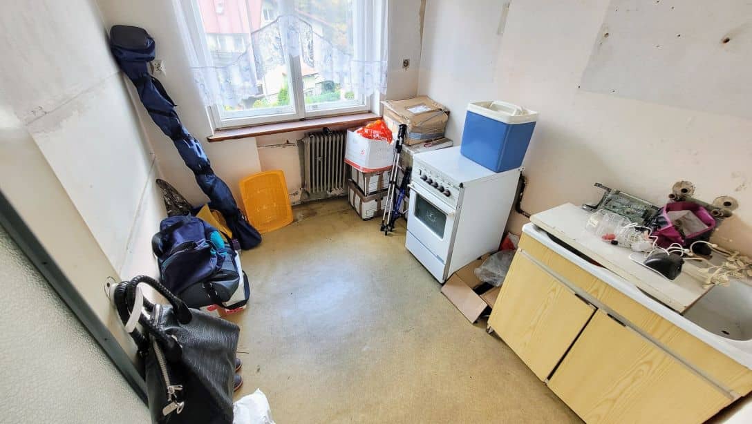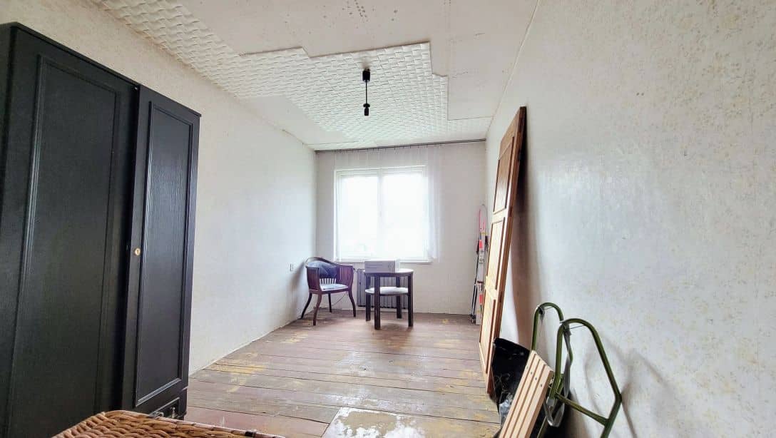 W domu można spokojnie zamieszkać na parterze, na którym znajduje się salon z wyjściem na taras i do ogrodu, sypialnia, kuchnia, łazienka z wanną, toaleta oraz przedpokój. Na tym poziomie okna zostały wymienione na plastikowe, ciepła woda pozyskiwana jest z junkersa gazowego, a centralne ogrzewanie jest z pieca w przyziemiu na paliwo stałe. Ta część nieruchomości jest zadbana i w dobrym stanie, więc można w niej od razu zamieszkać i powoli remontować resztę pomieszczeń.