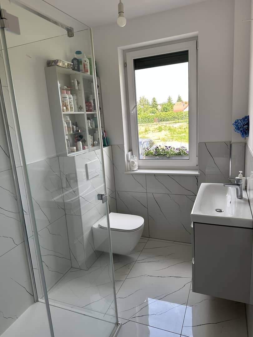 - Łazienka z oknem, kabiną prysznicową i WC 4m2