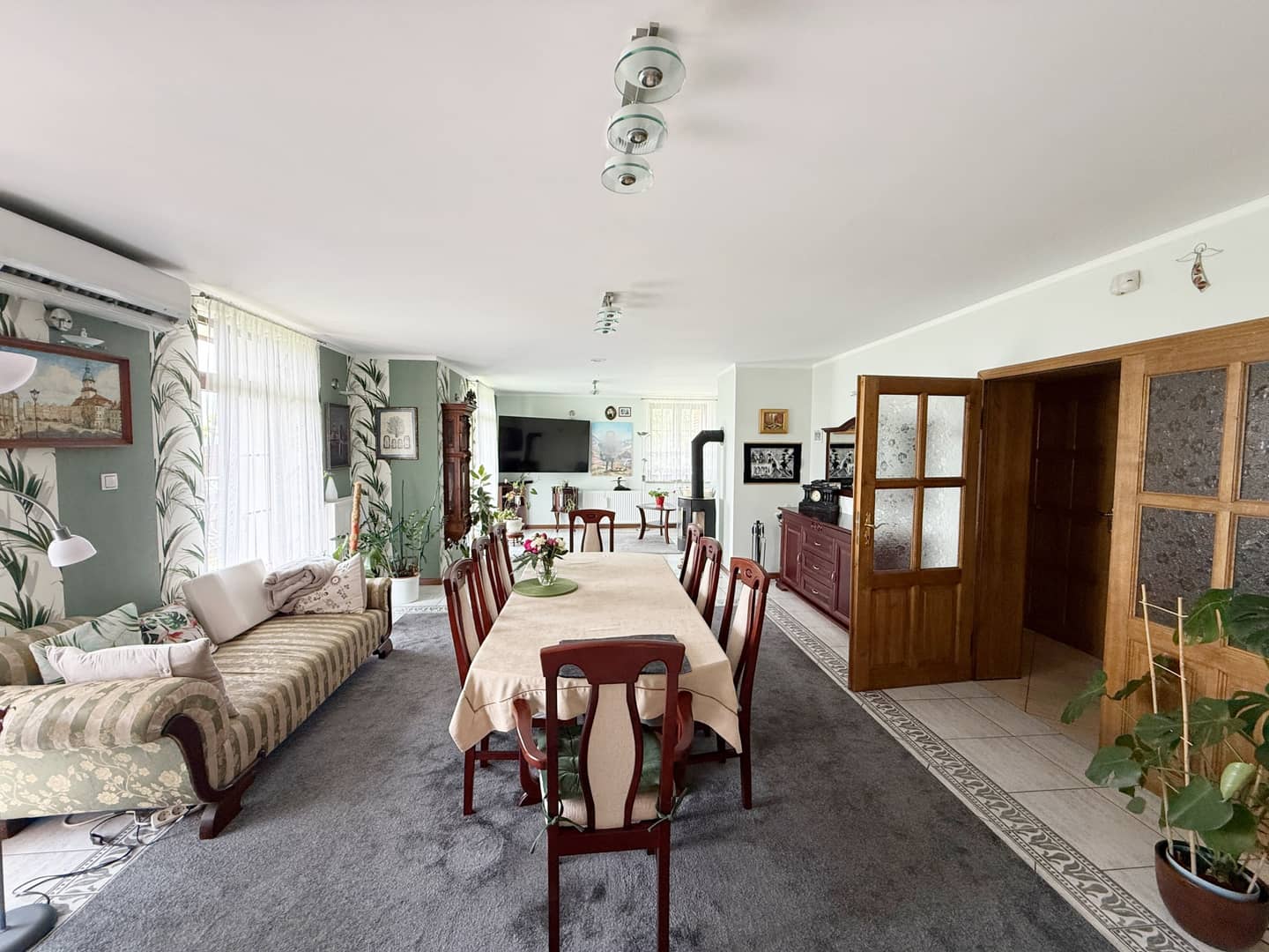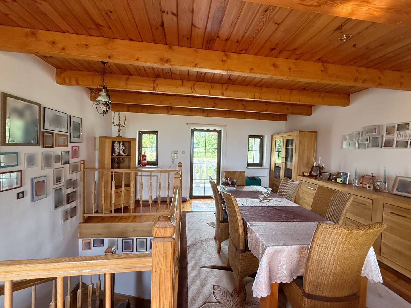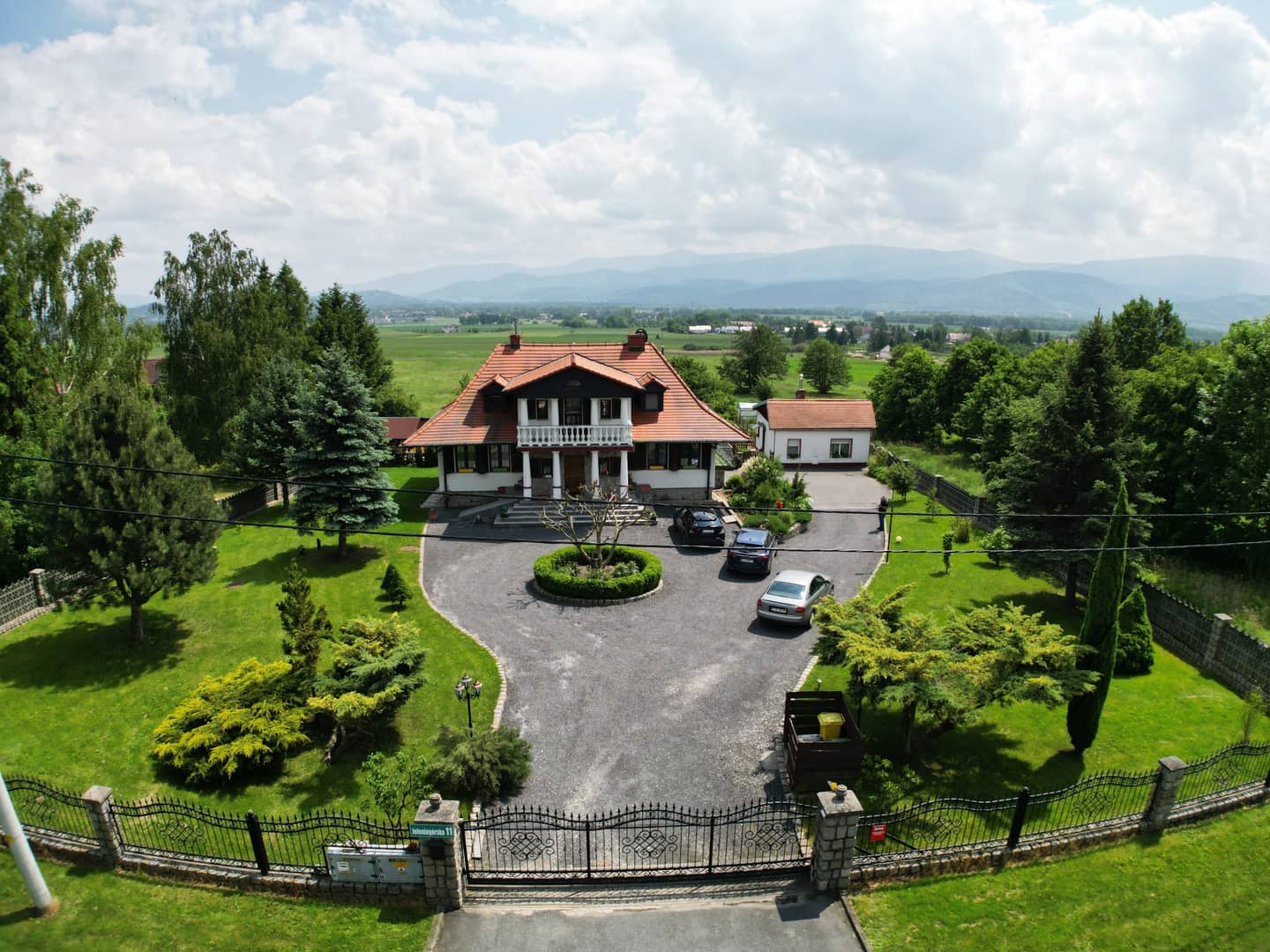 To wyjątkowa nieruchomość o niepowtarzalnym charakterze, położona w spokojnej okolicy z pięknym widokiem na góry i zadbaną przestrzenią wokół domu. To miejsce gdzie tradycja spotyka przyszłość, tworząc przestrzeń reprezentacyjną i ekonomiczną w utrzymaniu