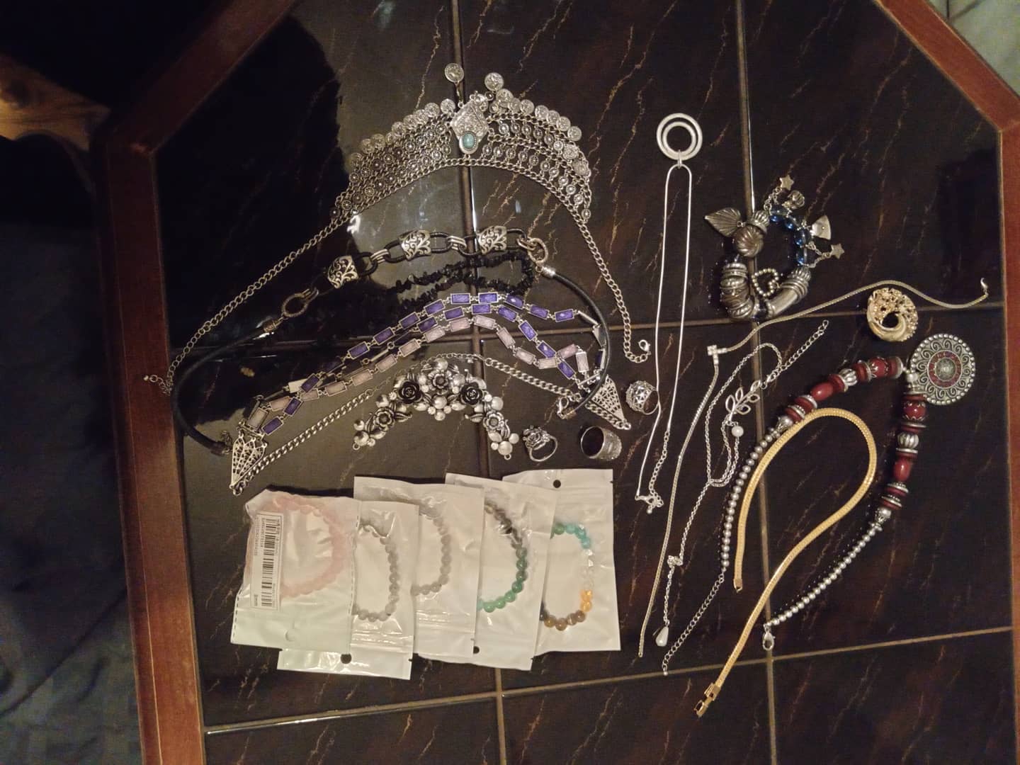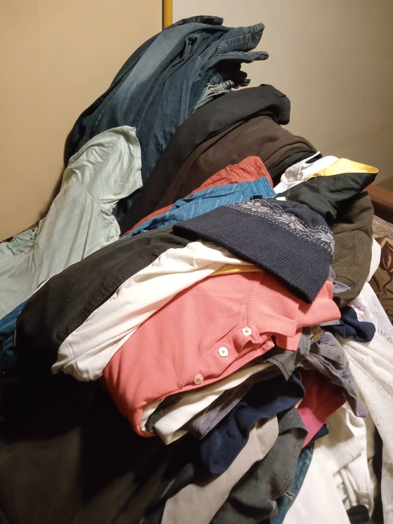Mama bardzo dużo odzieży do oddania, obuwie, biżuteria i walizka.