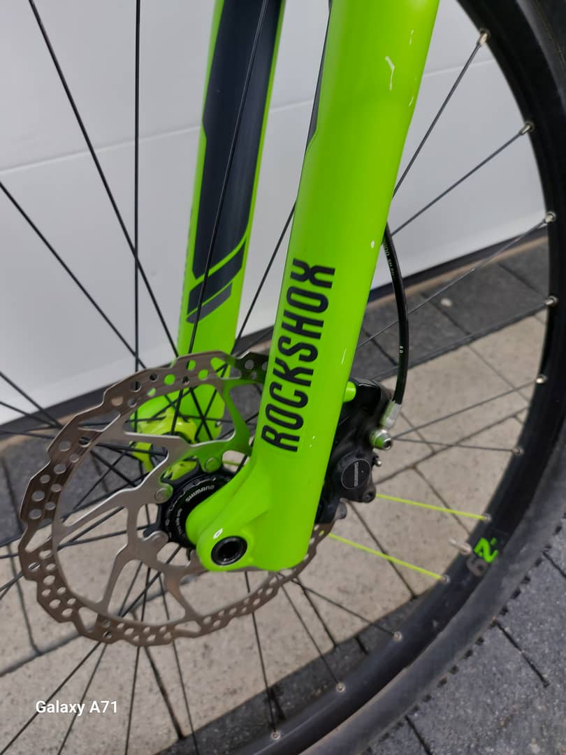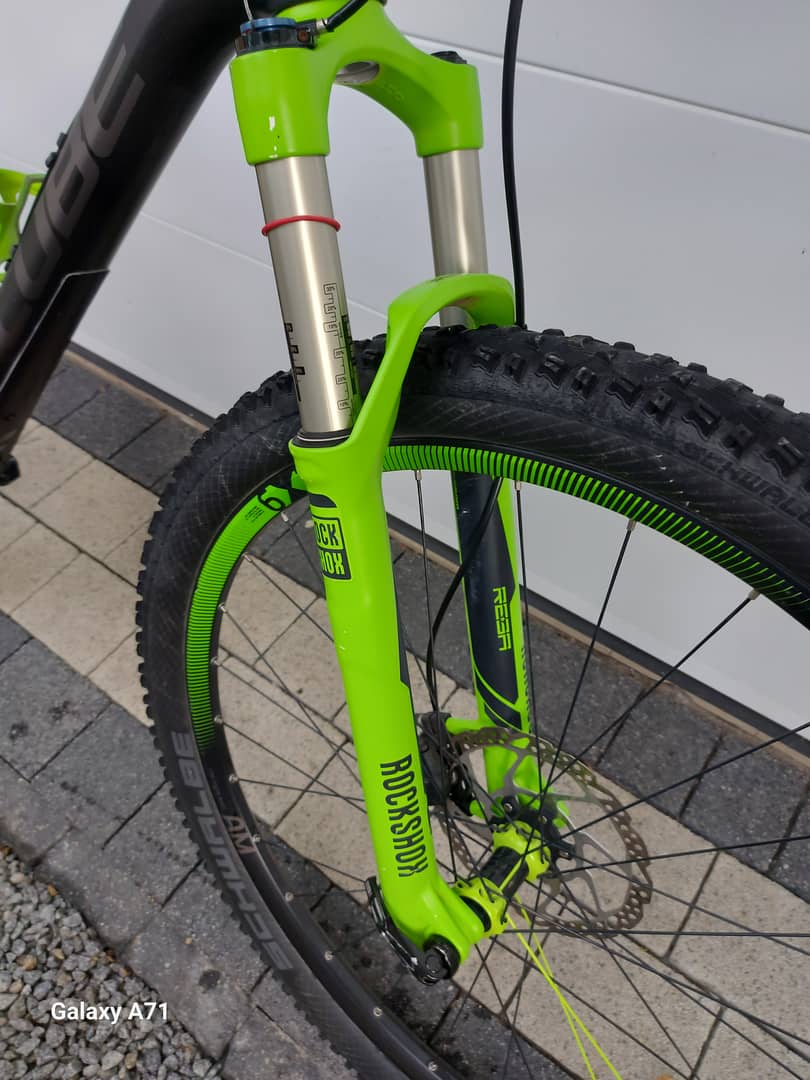 - amortyzator ROCKSHOX REBA powietrzny na sztywnej piaście regulowany z blokadą skoku przy kierownicy