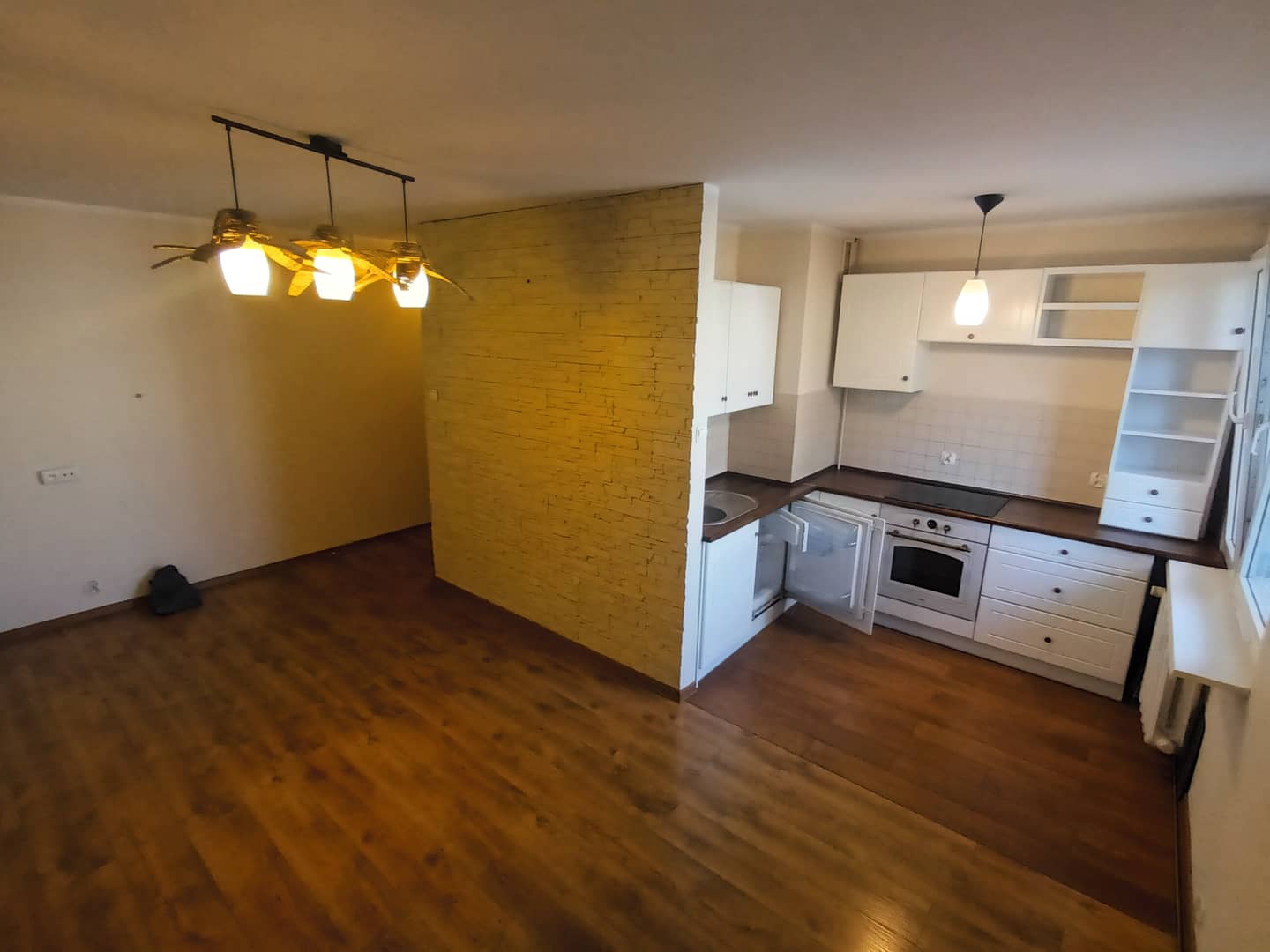 Sypialnia, pokój z aneksem kuchennym, balkon, piwnica, łazienka z prysznicem. Do wynajęcia. Pokój do umeblowania we własnym zakresie.