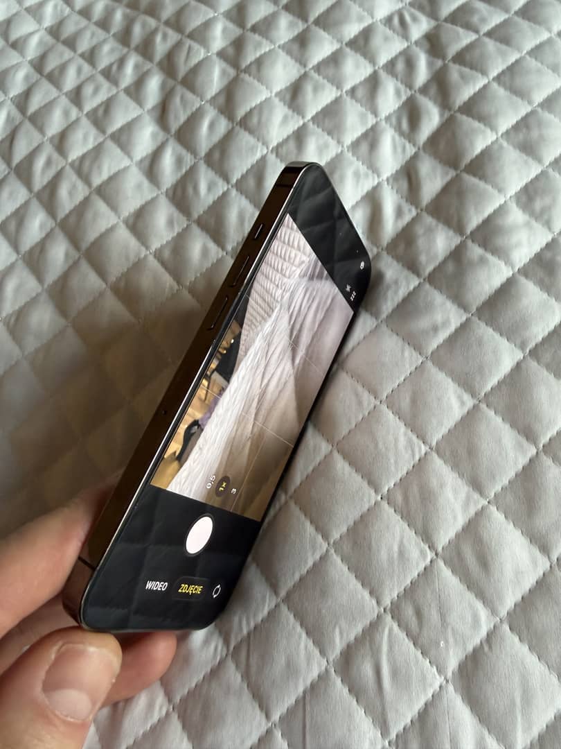 dzień dobry Mam na sprzedaż telefon iPhone'a 128 GB pamięci 3 GB pamięci RAM kabel ładujący plecy gumowe etui bateria trzyma cały dzień lekkie pęknięcie w lewym narożniku co w ogóle n