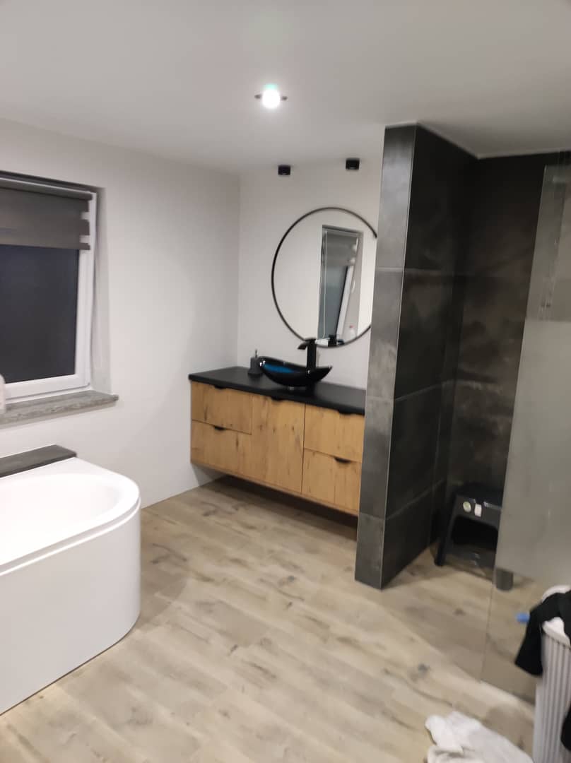 Planujesz nową łazienkę ? Oferuję profesjonalne usługi remontowe i wykończeniowe z dbałością o każdy detal Pracuję na profesjonalnym sprzęcie, utrzymuję porządek w miejscu pracy i g
