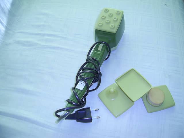Sprzedam ręczny masażer hBh do ciała. 4 wymienne końcówki. Niewielkie ślady użytkowania. Sprawny - głośna praca transformatora. Zasilanie sieciowe 220V. 35 zł.