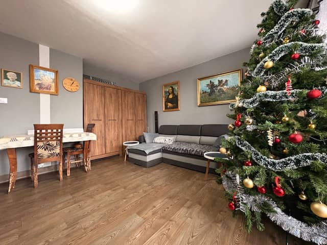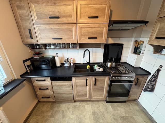STANDARD: Ona pcv, na podłogach w dwóch pokojach panele w jednym wykładzina pcv, na ścianach tynki. Kuchnia po remoncie umeblowana. WC po