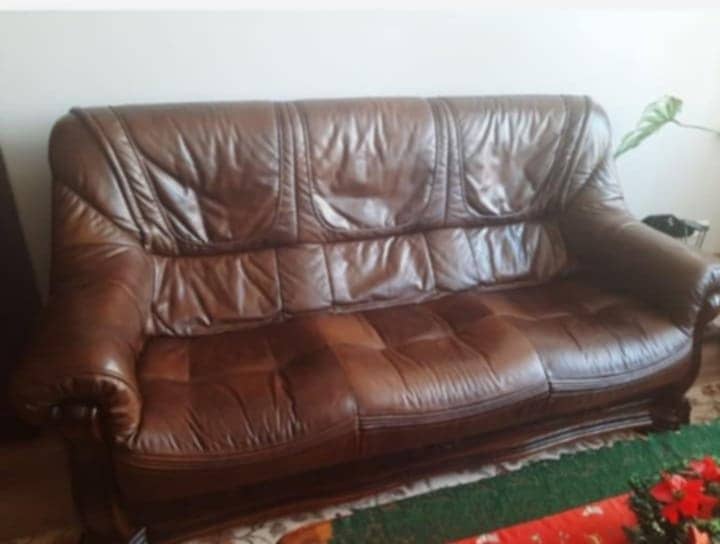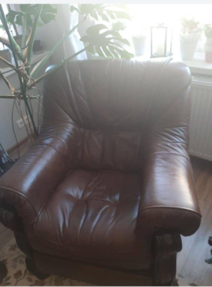 Kanapa nierozkładana, dwa fotele w tym jeden elektryczny.