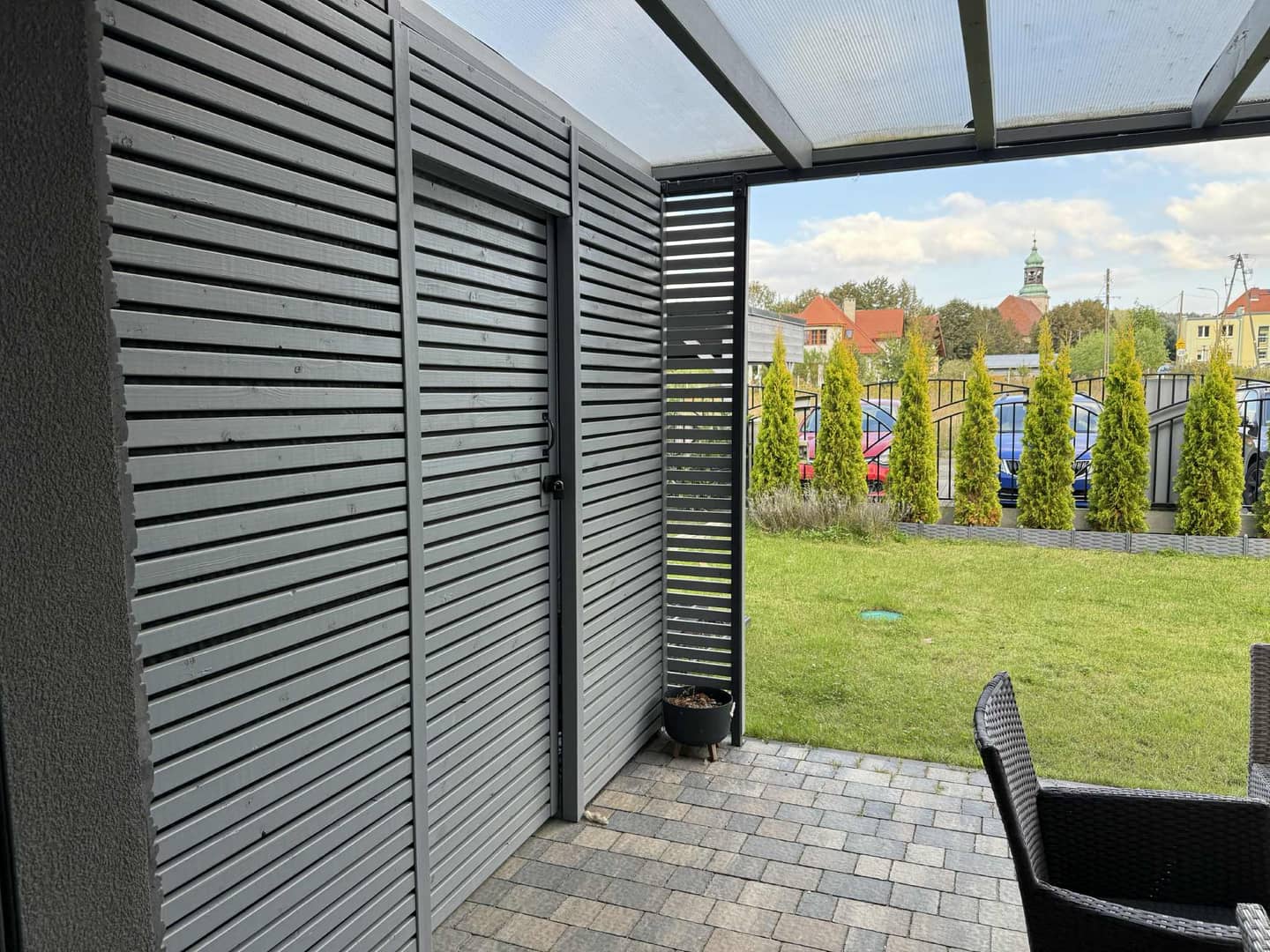 Zadaszony taras z meblami ogrodowymi