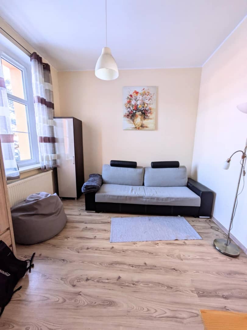 Mieszkanie jest jasne i słoneczne. Jest ono wyjątkową propozycją dla singla lub pary szukającej mieszkania w cichej okolicy, która jest jednocześnie dobrze skomunikowana z centrum miasta.