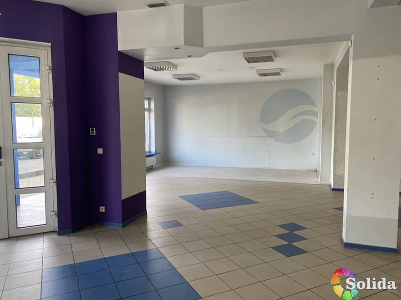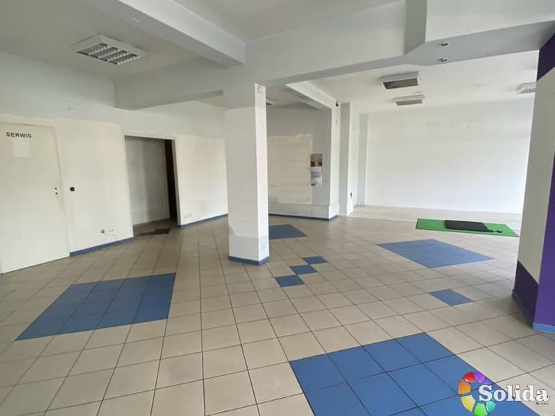Lokal o powierzchni 109 m2 składa się z dużej sali sprzedaży, zaplecza sanitarnego oraz łazienki z WC.