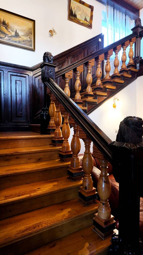 - I kondygnacja ( wysoki parter) składa się z wiatrołapu, przestronnego salonu ze zdobionymi schodami, pokoju z łazienką, kuchni, schowka oraz dużego ogrodu zimowego mogącego pełnić funkcję jadalni dla gości)