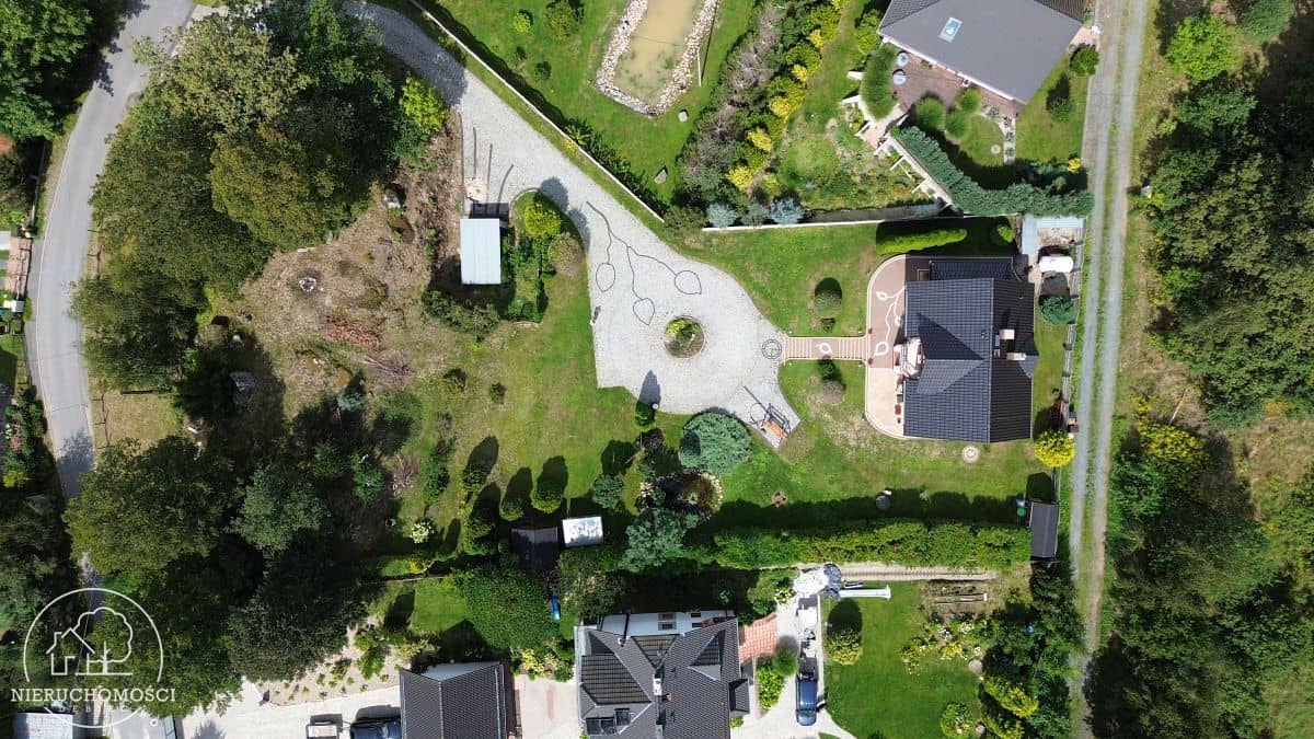 Nieruchomość o powierzchni 112 m2 usytuowana na przestronnej działce o powierzchni 3014 m², o nieregularnym kształcie.