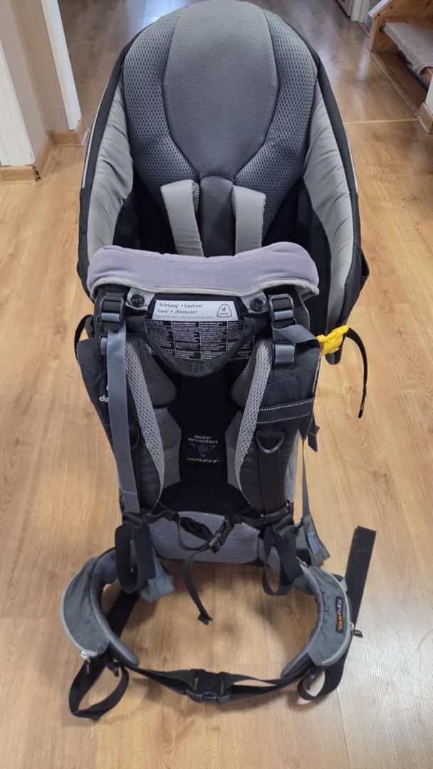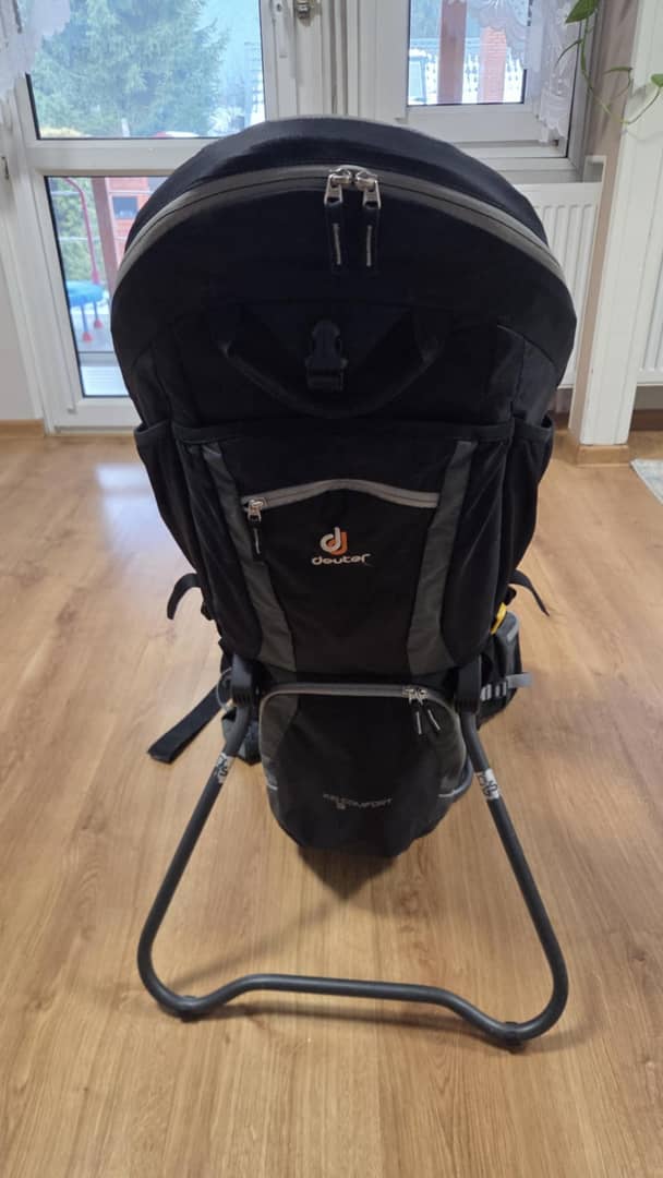 sprzedam nosidło dla dziecka Deuter kid komfort III w bardzo dobrym stanie. W zestawie znajduje się pokrowiec przeciwdeszczowy, lusterko do podglądania dziecka w czasie marszu...Ten model posiada zintegrowany daszek chowany w specjalnej kieszeni na zamek. Posiada wiele przydatnych kieszeni np. na pieluszki, chusteczki, bidon itp. Użytkowaliśmy go przez 2 lata, na wycieczkach w górach i nie tylko. Jest bardzo wygodny, dobrze dopasowuje się do pleców, ergonomiczny. Wpisując model nosidełka w przeglądarce można znaleźć kilka recenzji tego nosidełka. Cena to tylko 420zł Polecam!