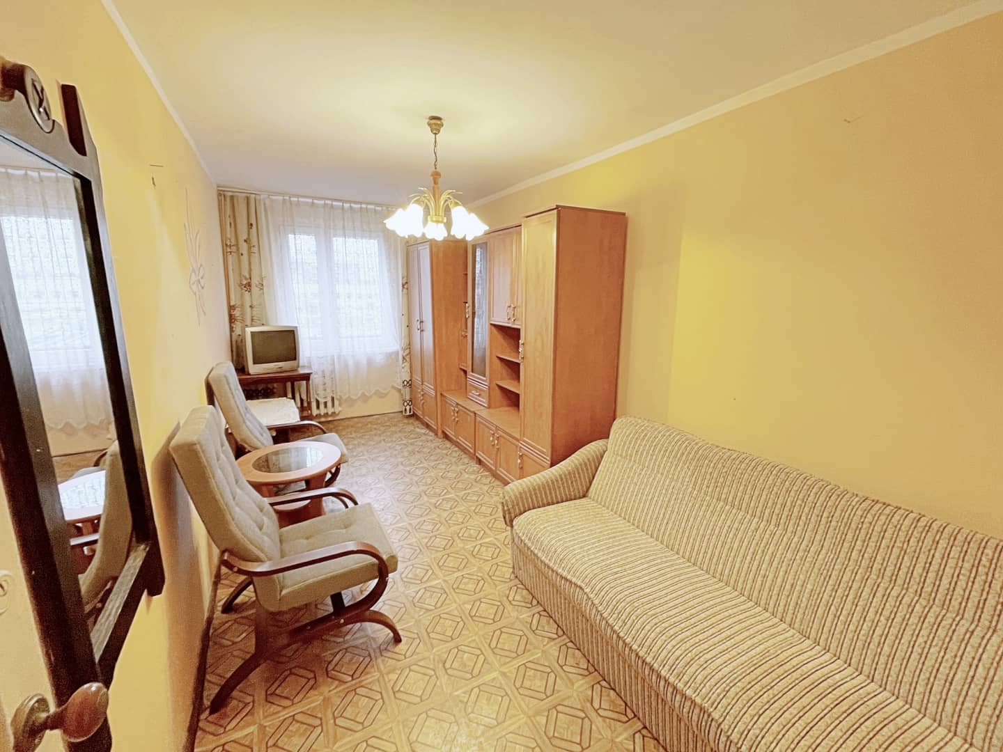 Mieszkanie kwalifikuje się do remontu, okna plastikowe, na podłogach wykładzina oraz panele, pokoje słoneczne i ustawne, z salonu wyjście na balkon. Ogrzewanie oraz ciepła woda z sieci miejskiej.