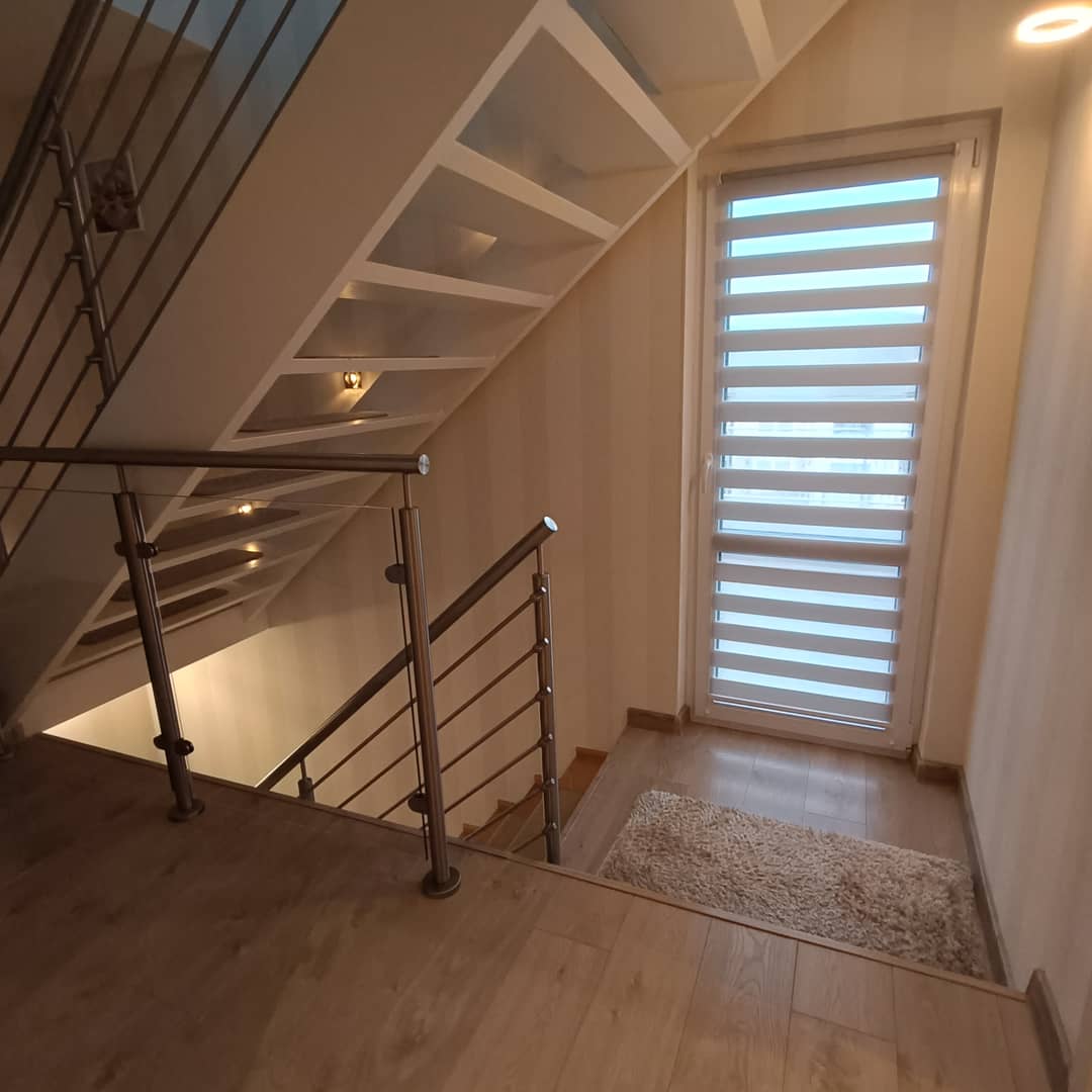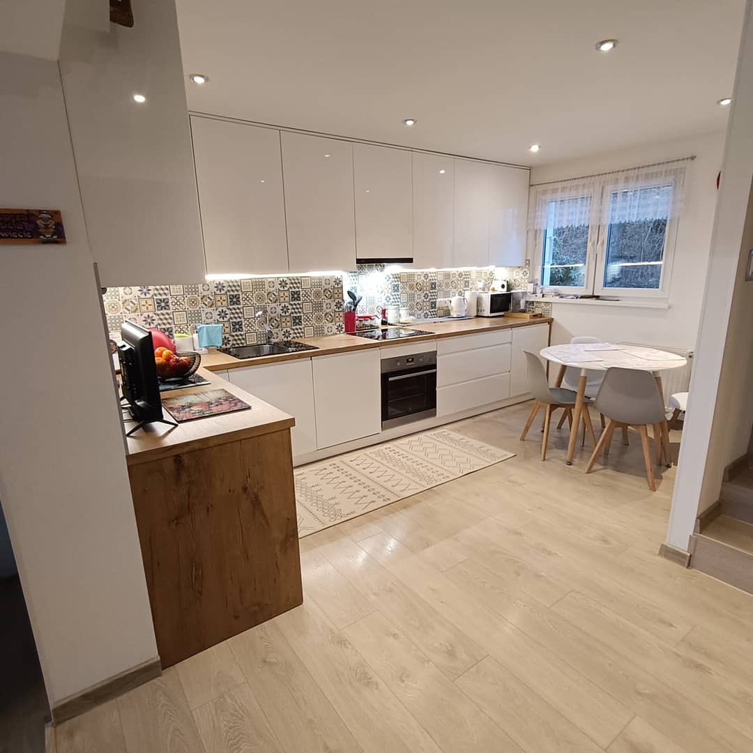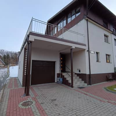 Komfortowo wykończony dom w zabudowie bliźniaczej, w Kowarach. Posadowiony na działce 523 m2 o powierzchni całkowitej około 190 m2 i użytkowej 153 m2. W przyziemiu budynku znajduje się pralnia, kotłownia, warsztat plus 2 pom. gospodarcze. Parter obejmuje przedpokój, łazienkę, wyposażoną i umeblowaną kuchnie, połączona z jadalnią i poniżej salonem z wyjściem na drewniany taras, połączony z ogrodem. Na piętro prowadzą nowe, podświetlane schody gdzie znajduje się korytarz, 2 pokoje, łazienka, garderoba oraz taras około 50 m2 z pięknymi widokami na panoramę miasta i pobliskie wzgórza. Powyżej otwarty, przestronny i słoneczny salon oraz sypialnia z mniejszą garderobą i wyjściem na balkon. Budowany pod koniec lat 70 z superexu, ocieplony suprema, dach pokryty blachą. W 2019 roku dom przeszedł kapitalny remont, wymieniono wszystkie instalacje, położone nowe tynki i gładzie, podłogi na całości pokryte panelami, wymienione okna na pcv 3 szybowe, nowe drzwi wewnętrzne i zewnętrzne. Ogrzewanie piecem gazowym, bardzo ekonomicznym firmy Vaillant z zasobnikiem na wodę. Dodatkowo zamontowane panele fotowoltaiczne. W bryle budynku garaż z bramą na pilota, przed domem położona kostka, teren ogrodzony metalowym płotem. Atrakcyjna lokalizacja z uwagi na bliskość centrum miasta a zarazem w otoczeniu natury i zieleni. Dom bardzo wygodny i komfortowy, urządzony gustownie, do zamieszkania bez dodatkowego wkładu finansowego. Cena 880 000 zł podlega negocjacji. Oferta dostępna tylko w Naszym biurze, serdecznie polecam i zapraszam na prezentację Nieruchomości