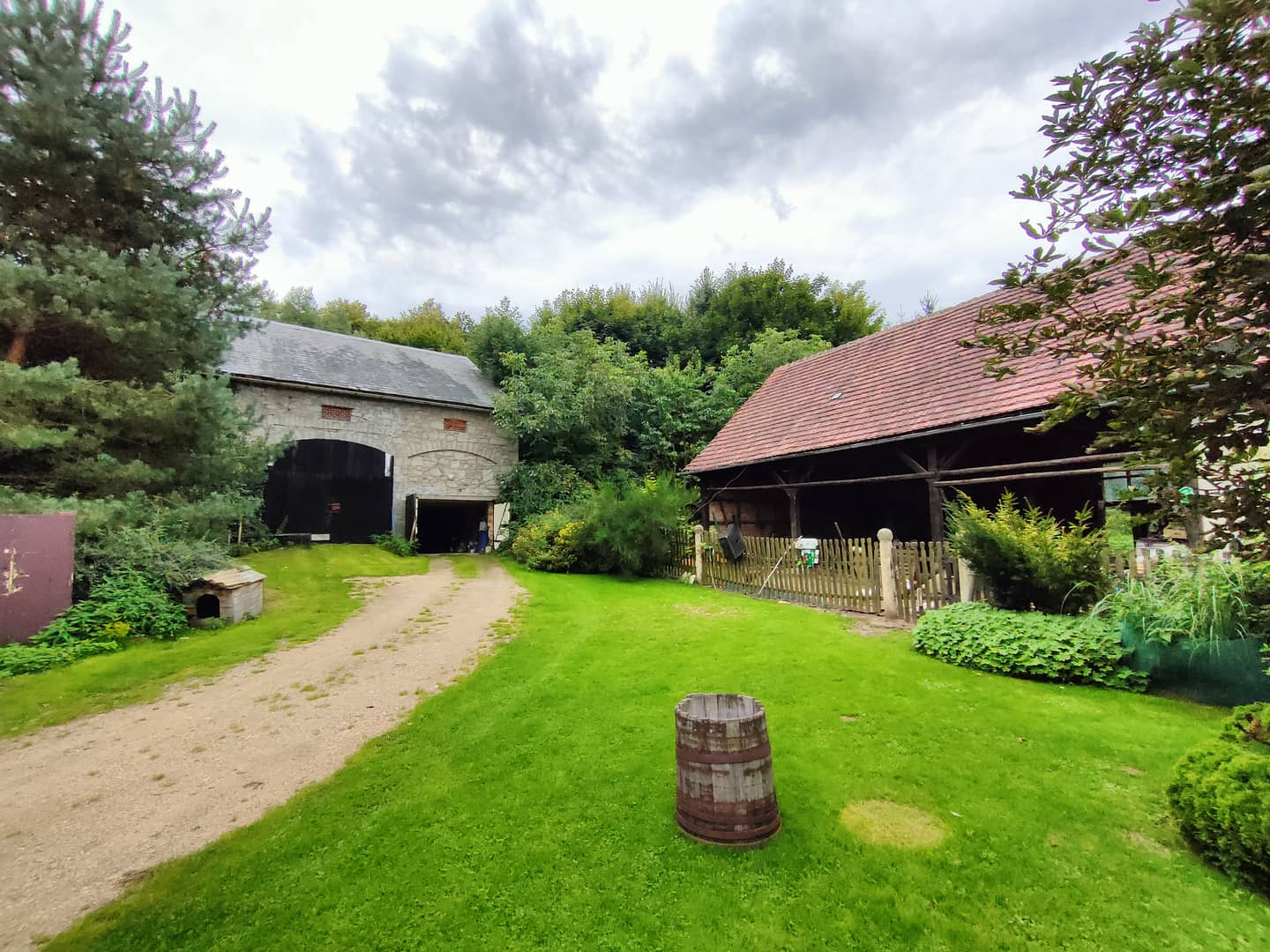 Posiadłość wiejska dom ze stodołą i ziemią rolną, łącznie 9300 m2, w gminie Stara Kamienica. Posadowiony na działce 2366 m2, budowa z cegły i kamienia, częściowo podpiwniczony. Dach pokry