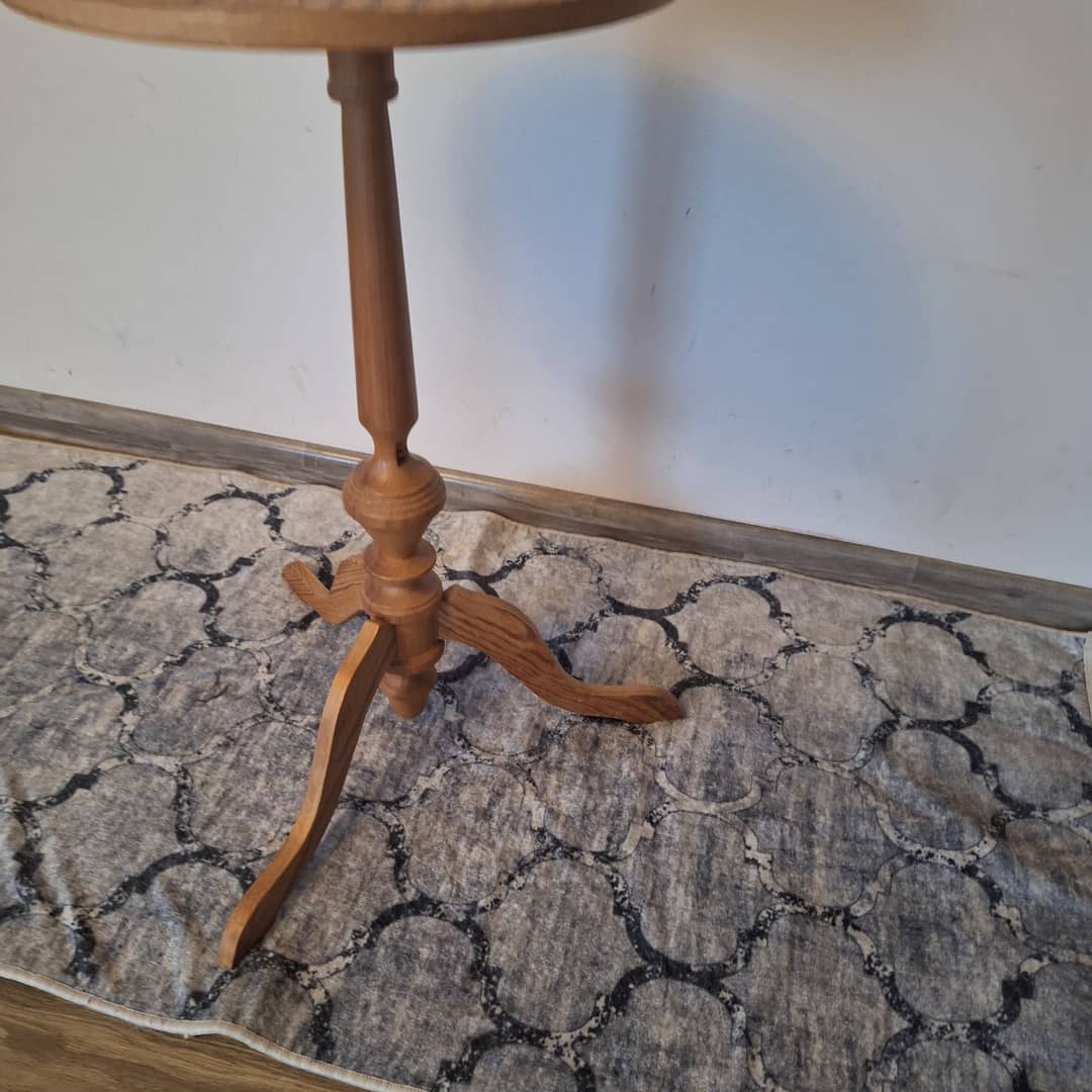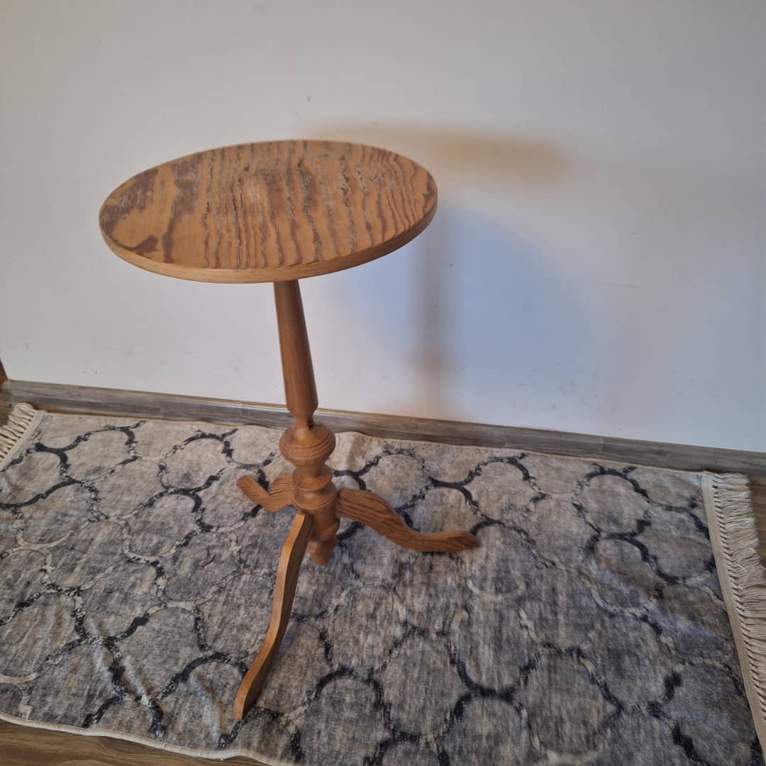 Mały, lekki stolik kawowy drewniany, średnica 38 cm, wysokość 67 cm. Cena 90 zł. Możliwy transport.