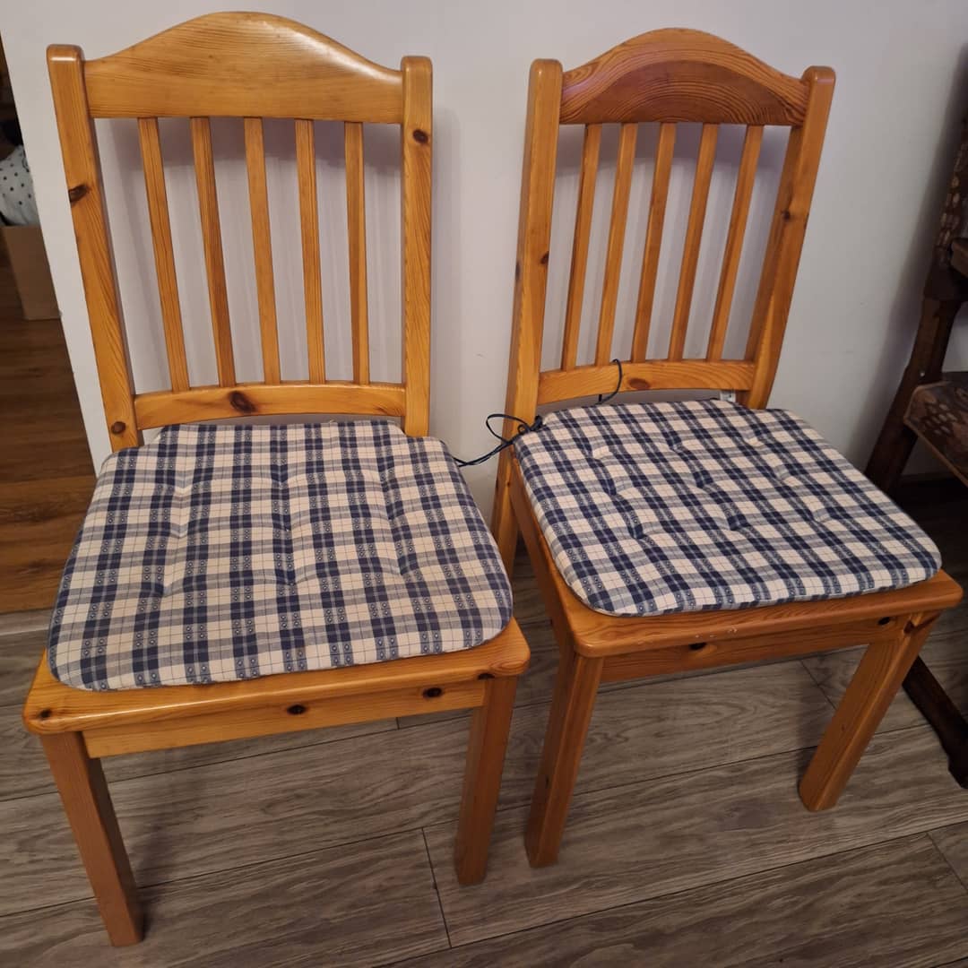 Dwa krzesła drewniane w bardzo dobrym stanie, z poduszkami . Możliwy dowóz lub odbiór osobisty. Cena za dwa 170 zł.