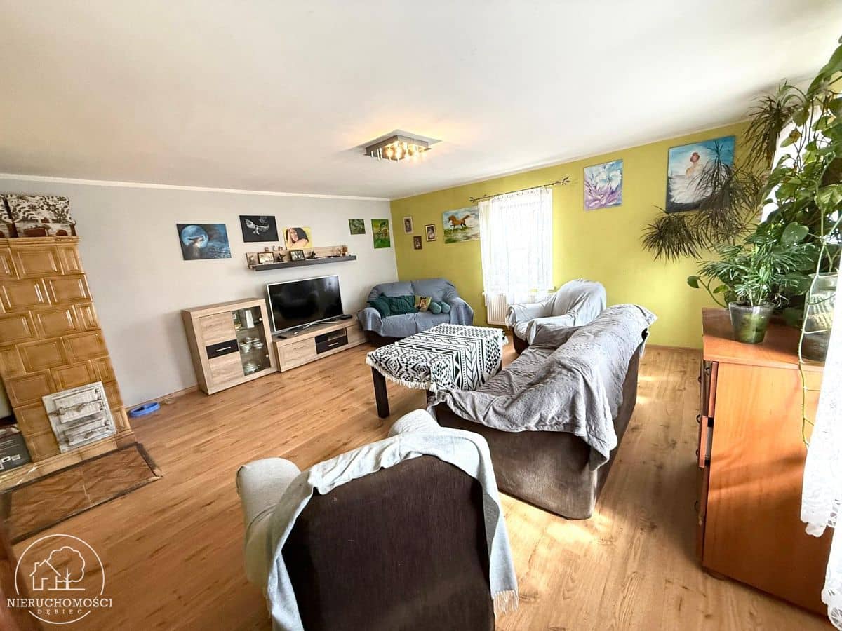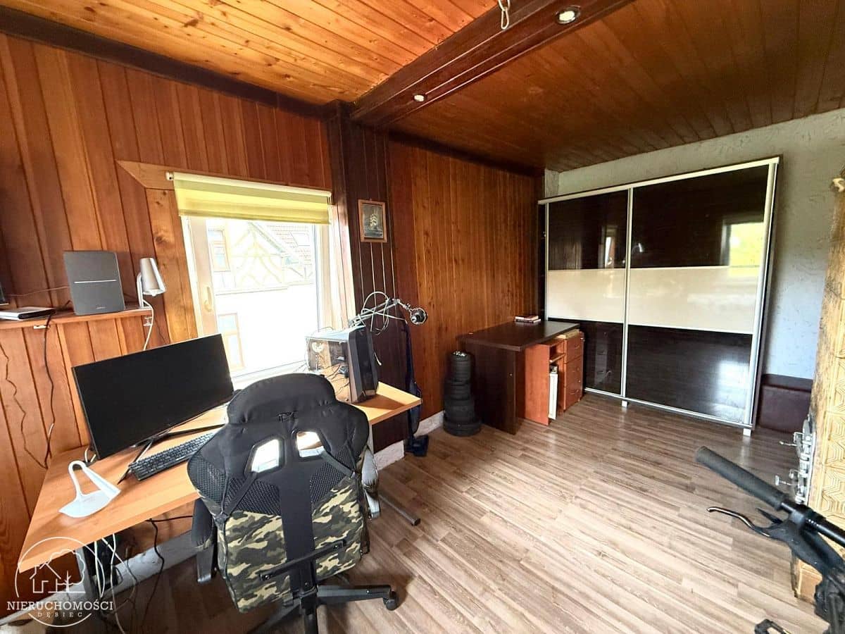 Na podłogach panele, kafle. Okna PCV.